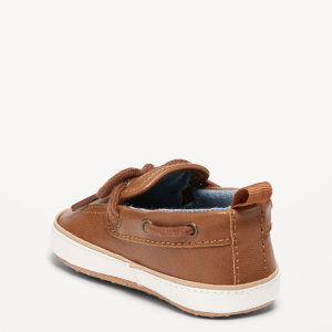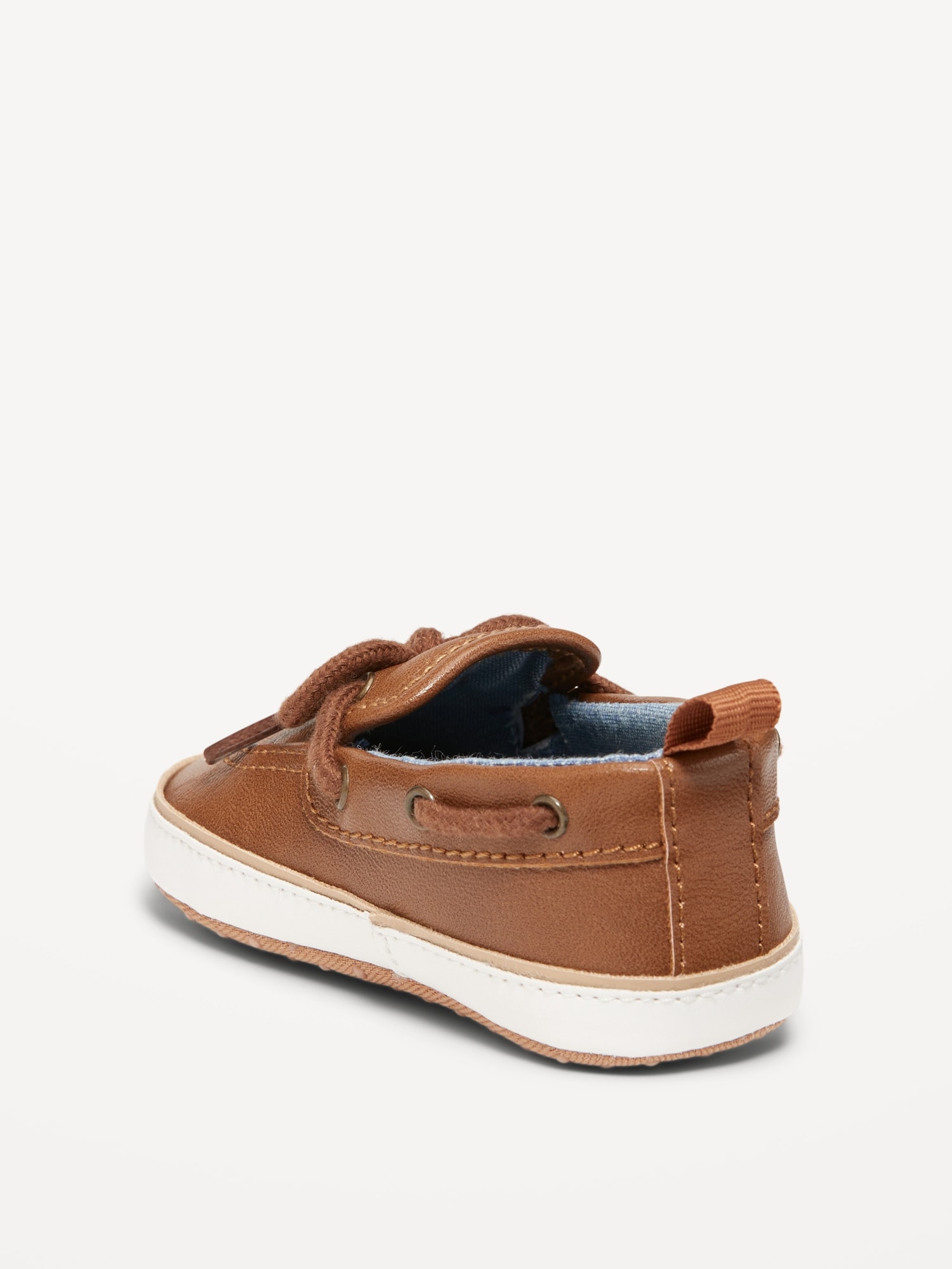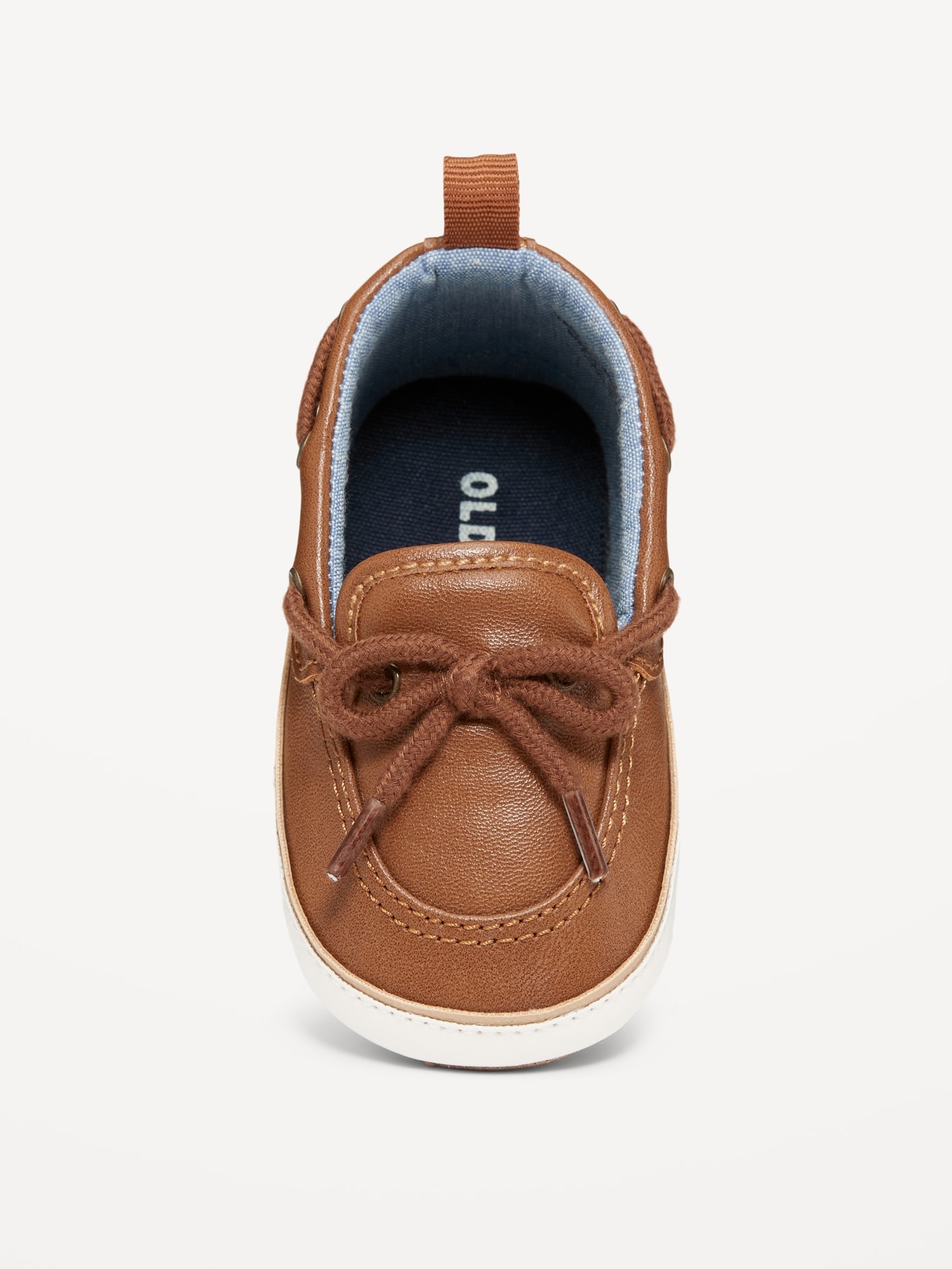 Faux-Leather Boat Shoes for Baby: lace-up front, boat-shoe side lace details, cushioned foot bed, textured synthetic outsole, #688830
