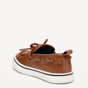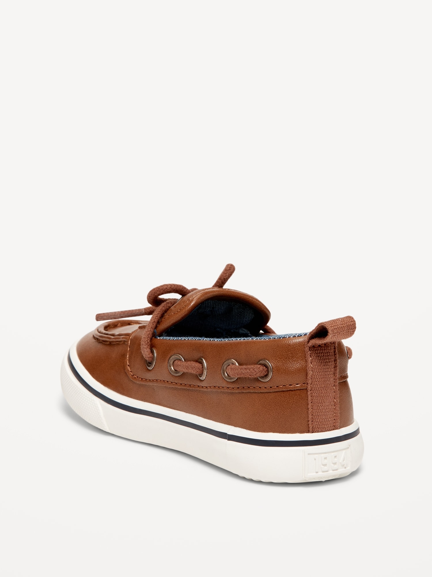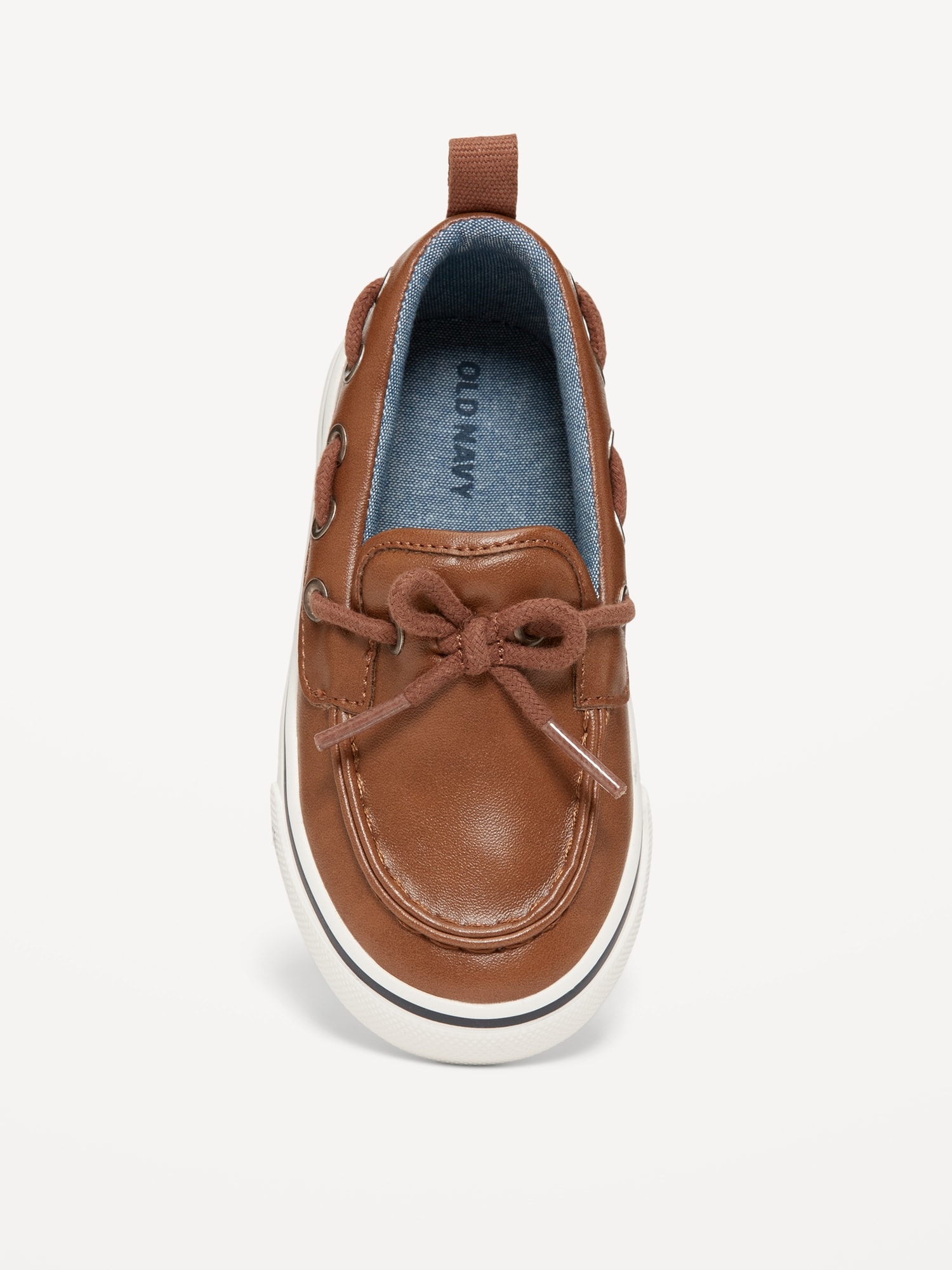 Faux-Leather Boat Shoes for Toddler Boys: lace-up front, boat-shoe side lace details, cushioned foot bed, rubber midsole, textured synthetic outsole, #688926
