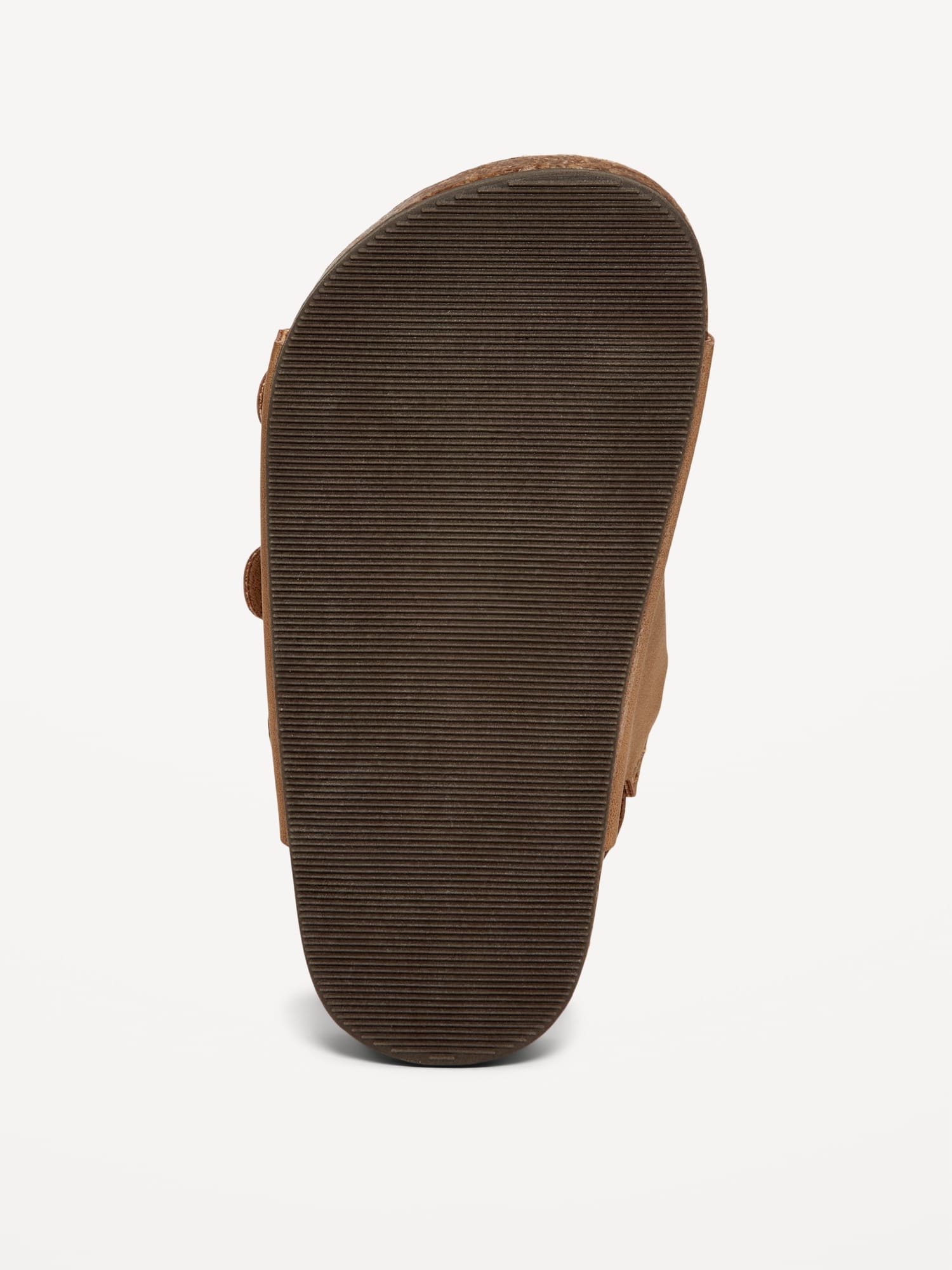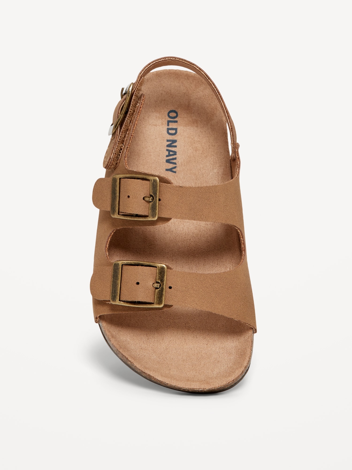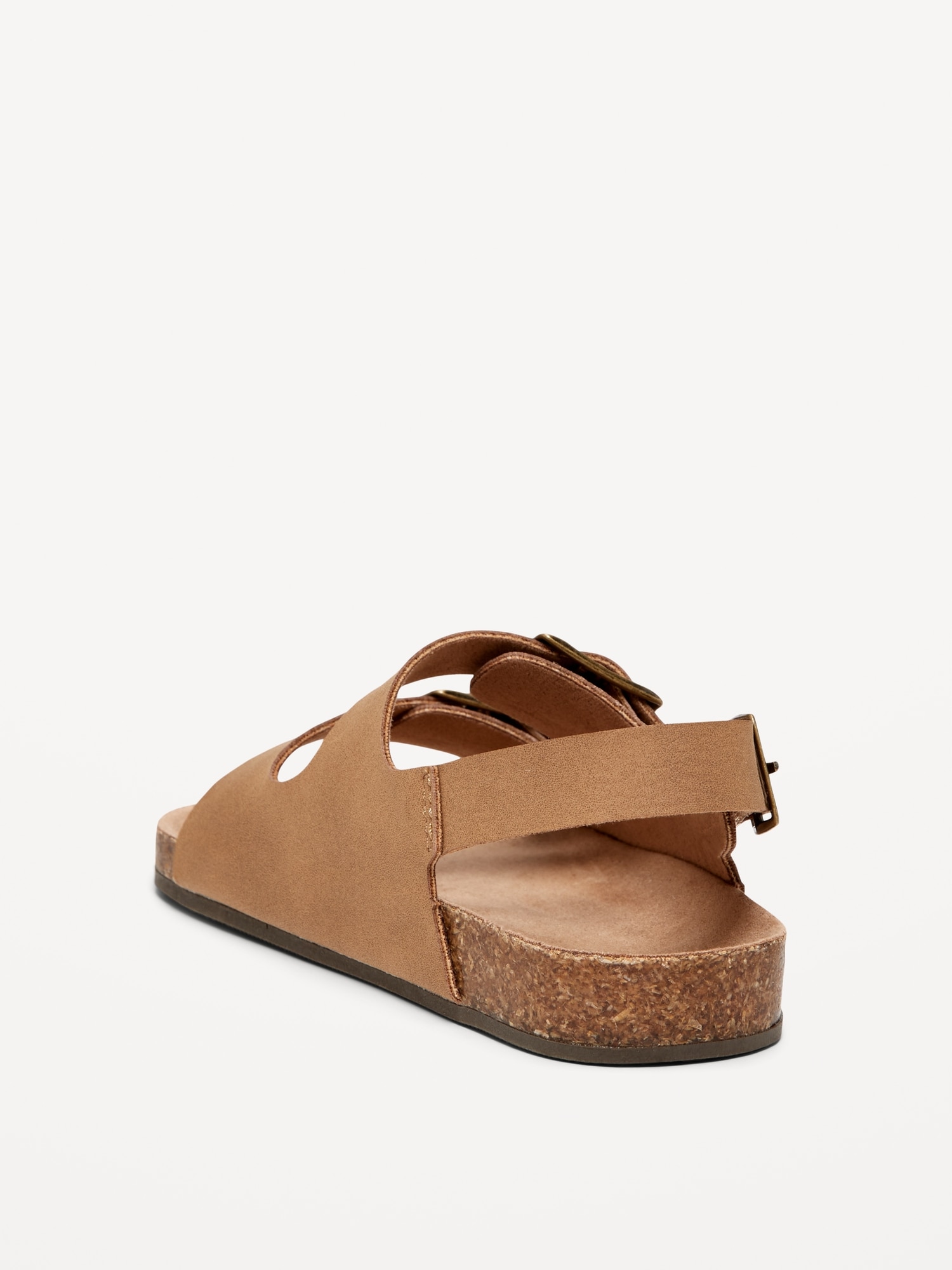 Faux-Leather Buckled Strap Sandals for Toddler Boys: buckled adhesive secure close ankle strap, double buckled straps across foot, faux-cork midsole, cushioned foot bed, #689190