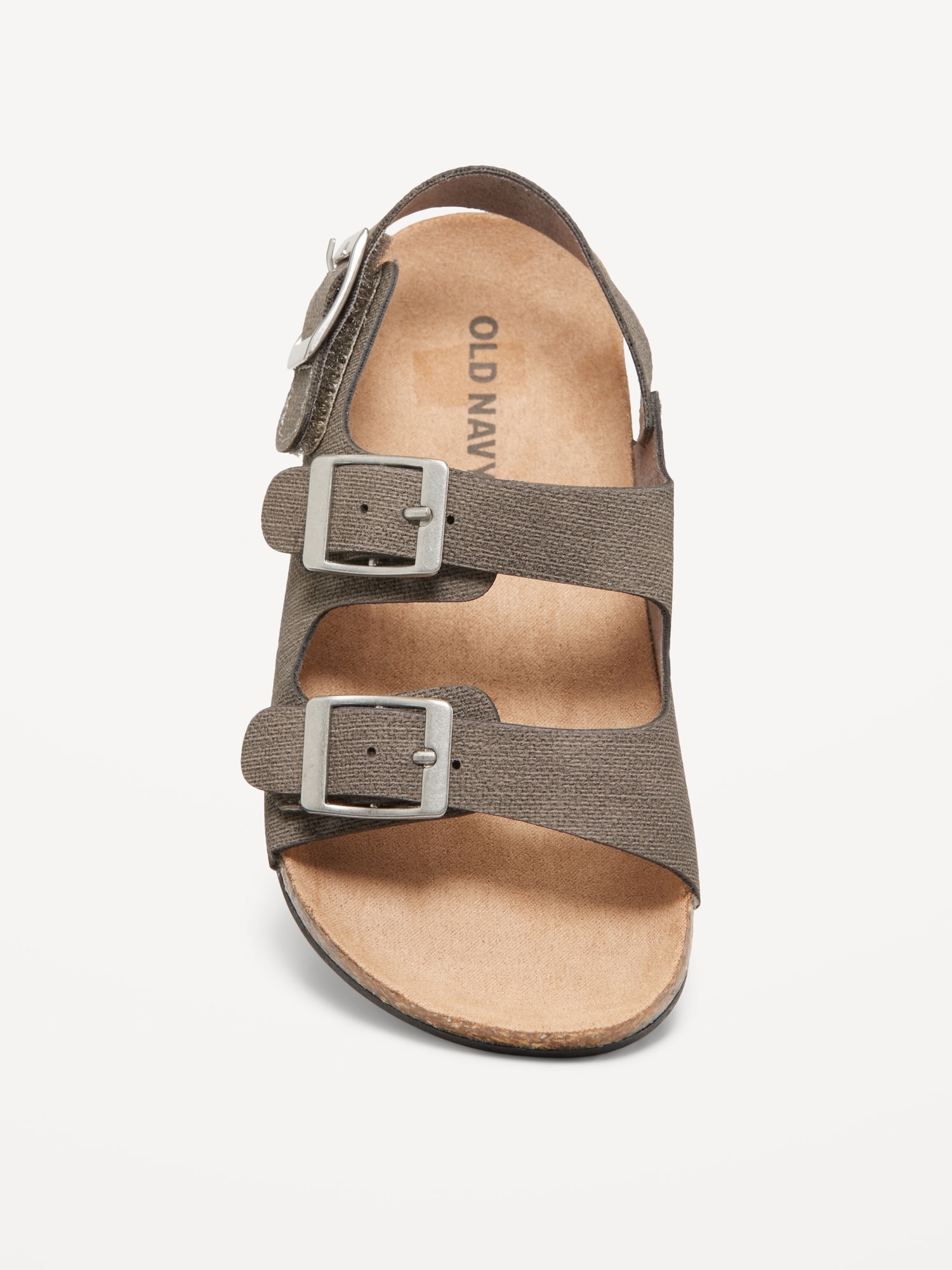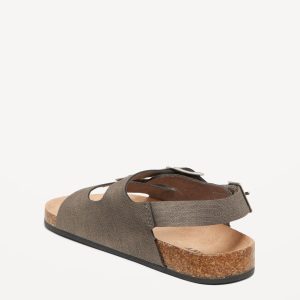 Faux-Leather Double-Strap Sandals for Toddler Boys: buckled adhesive secure close ankle strap, double buckled straps across foot, faux-cork midsole, cushioned foot bed, #689190