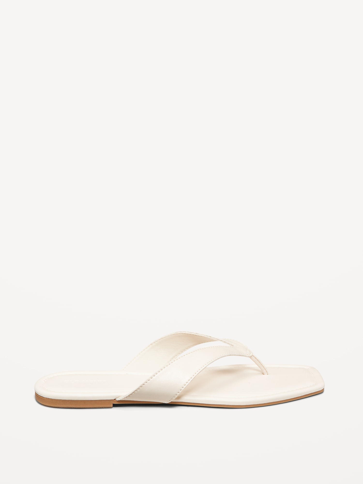 Faux-Leather Flip Flop for Women: faux leather upper, square toe, firm foot bed, slide-on style, #766739