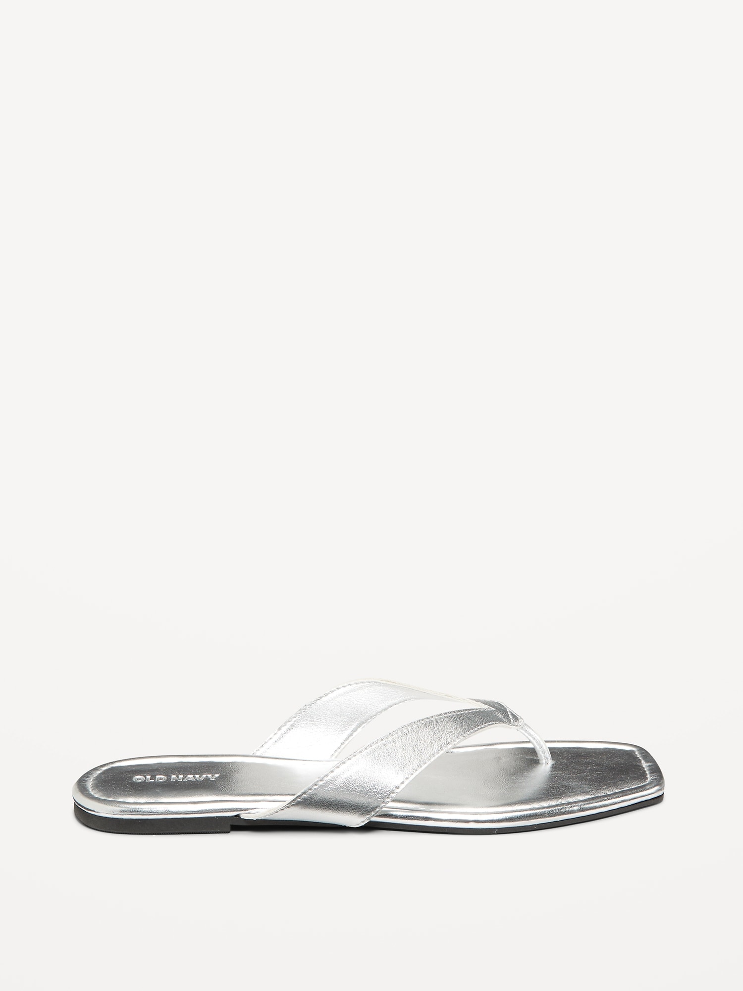 Faux-Leather Flip Flop for Women: faux leather upper, square toe, firm foot bed, slide-on style, #766739