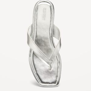 Faux-Leather Flip Flop for Women: faux leather upper, square toe, firm foot bed, slide-on style, #766739