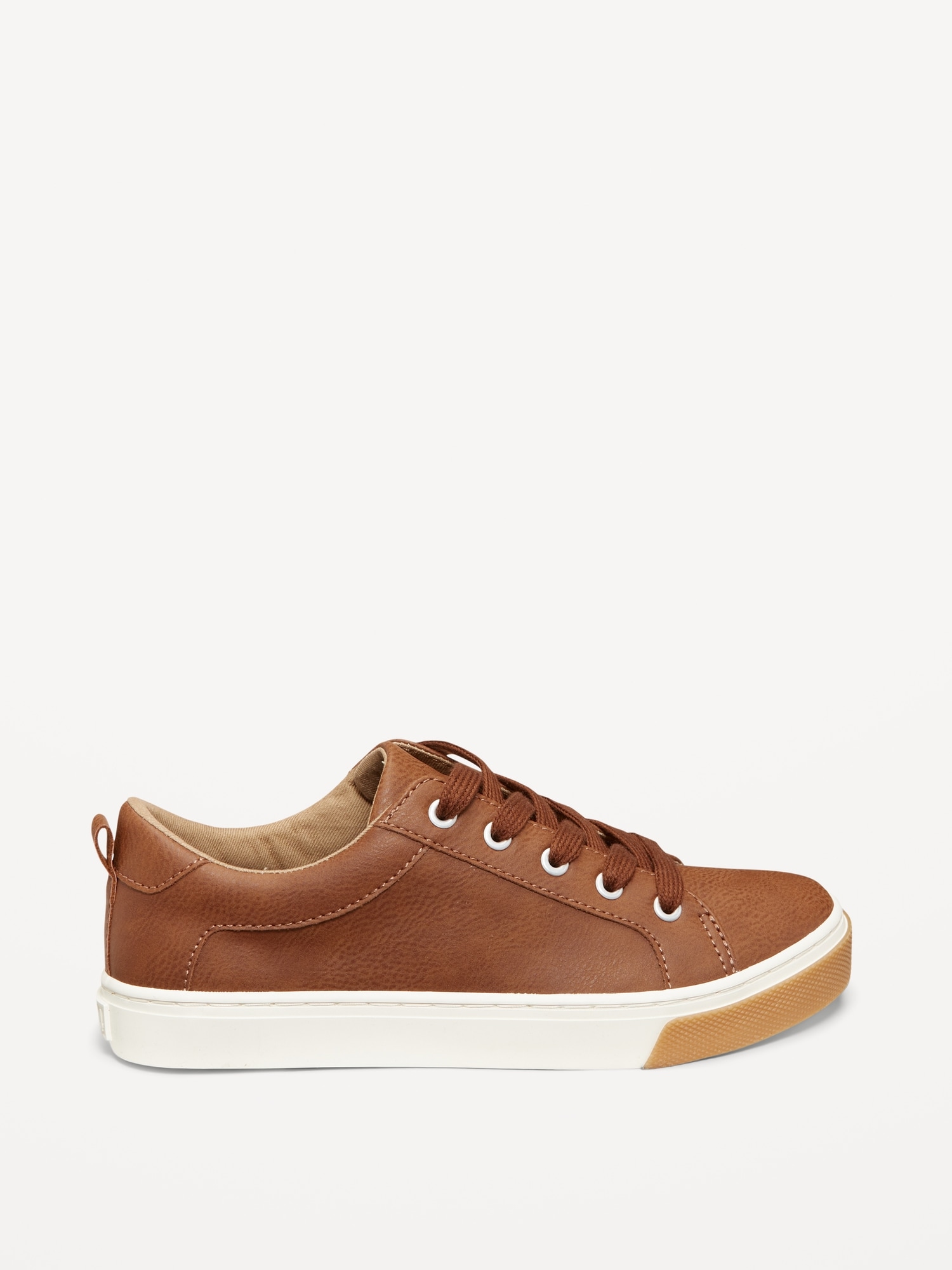 Faux-Leather Gender-Neutral Lace-Up Sneakers for Kids