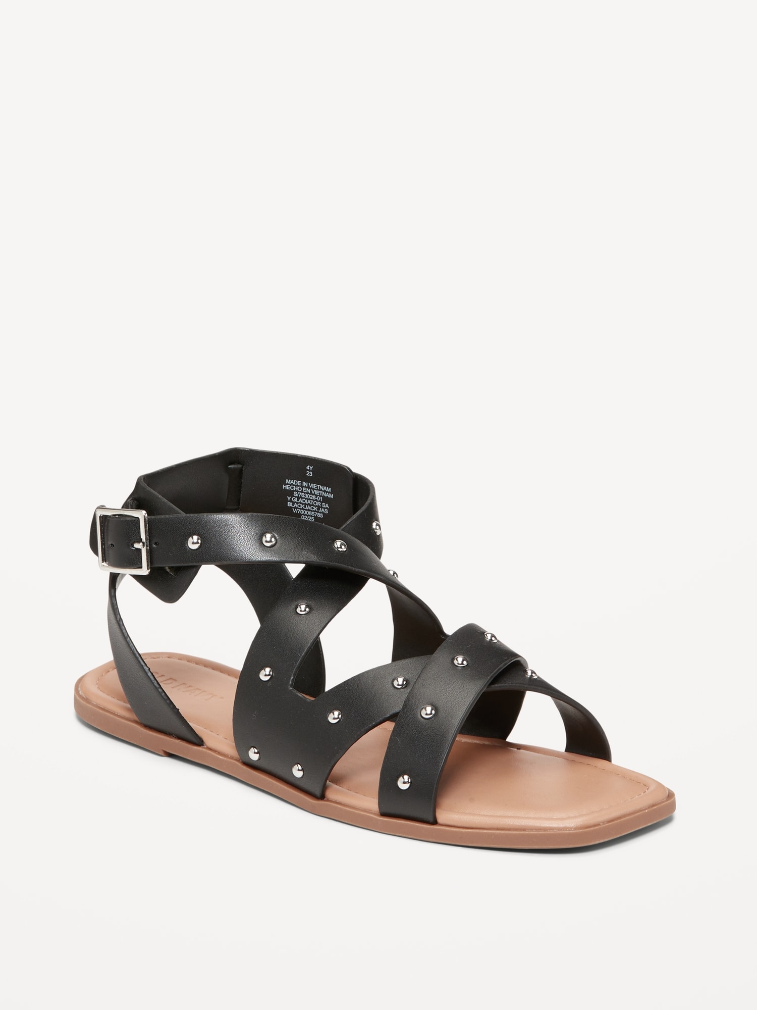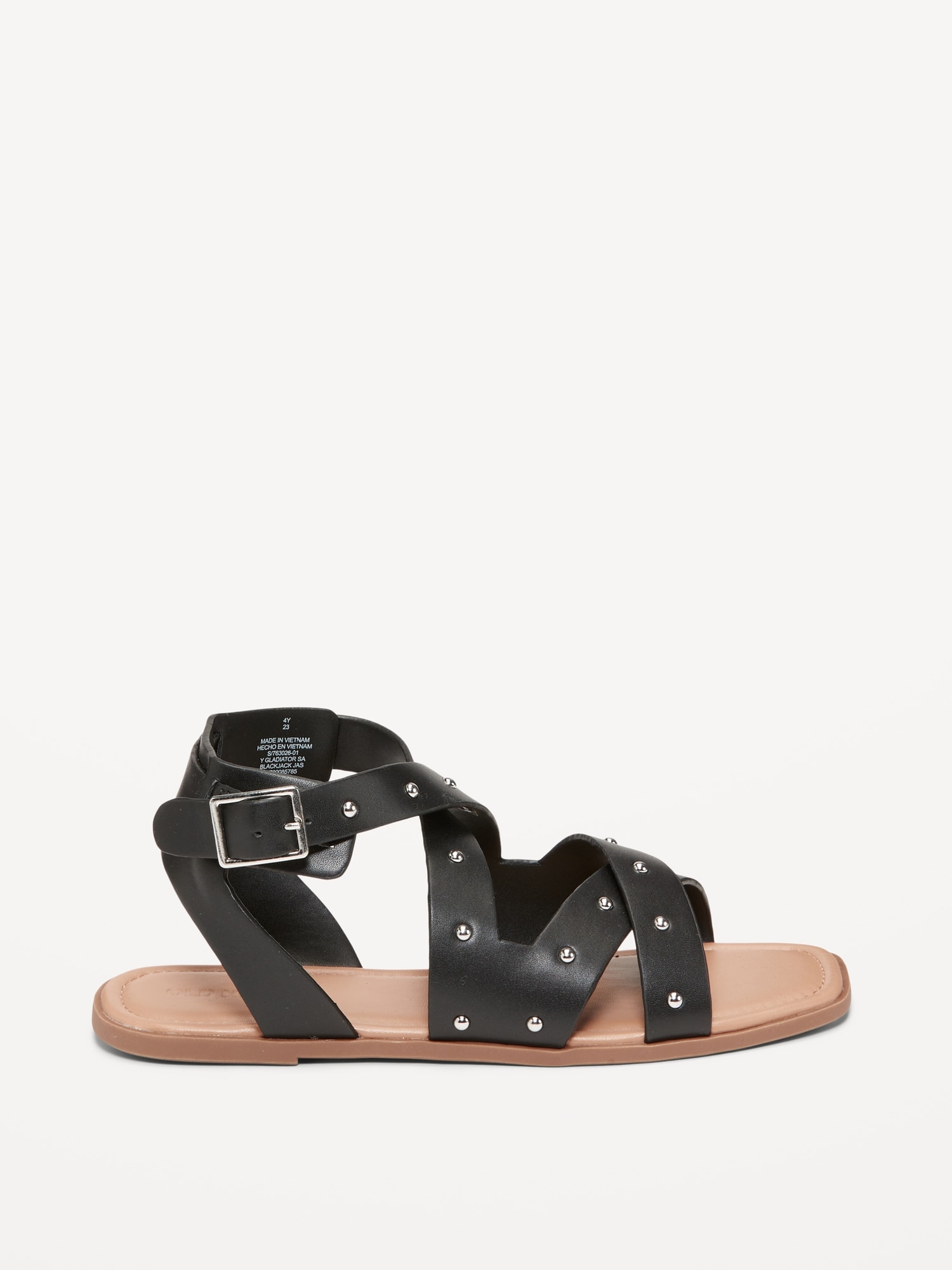 Faux-Leather Gladiator Sandals for Girls: buckled ankle strap, straps at foot, firm foot bed, textured outsole, #763026