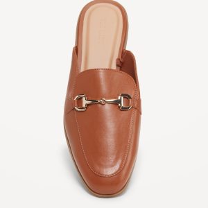 Faux-Leather Loafer Mule Shoes