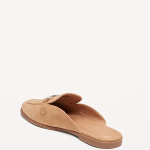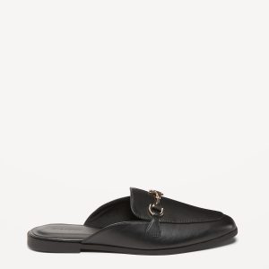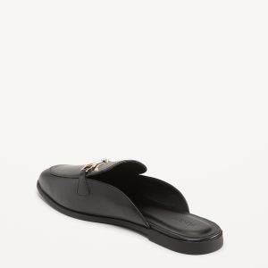 Faux-Leather Loafer Mule Shoes: Faux-leather upper, with buckle front detail, open mule heel, and pointed, square toe., Cushioned faux-leather foot bed., Textured thermoplastic rubber outsole., These shoes are made with a 51% recycled thermoplastic rubber outsole. Less waste in the world ??, #745325