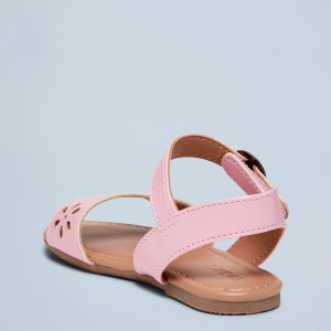 Faux-Leather Perforated Sandals for Toddler Girls: buckled adhesive secure close ankle strap, cushioned foot bed, perforated pattern across foot, open toe, #688770