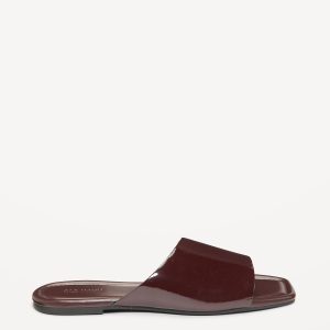 Faux-Leather Slide Sandals for Women: faux leather upper, square toe, cushioned foot bed, slide-on style, #766743