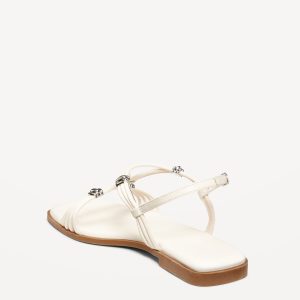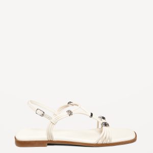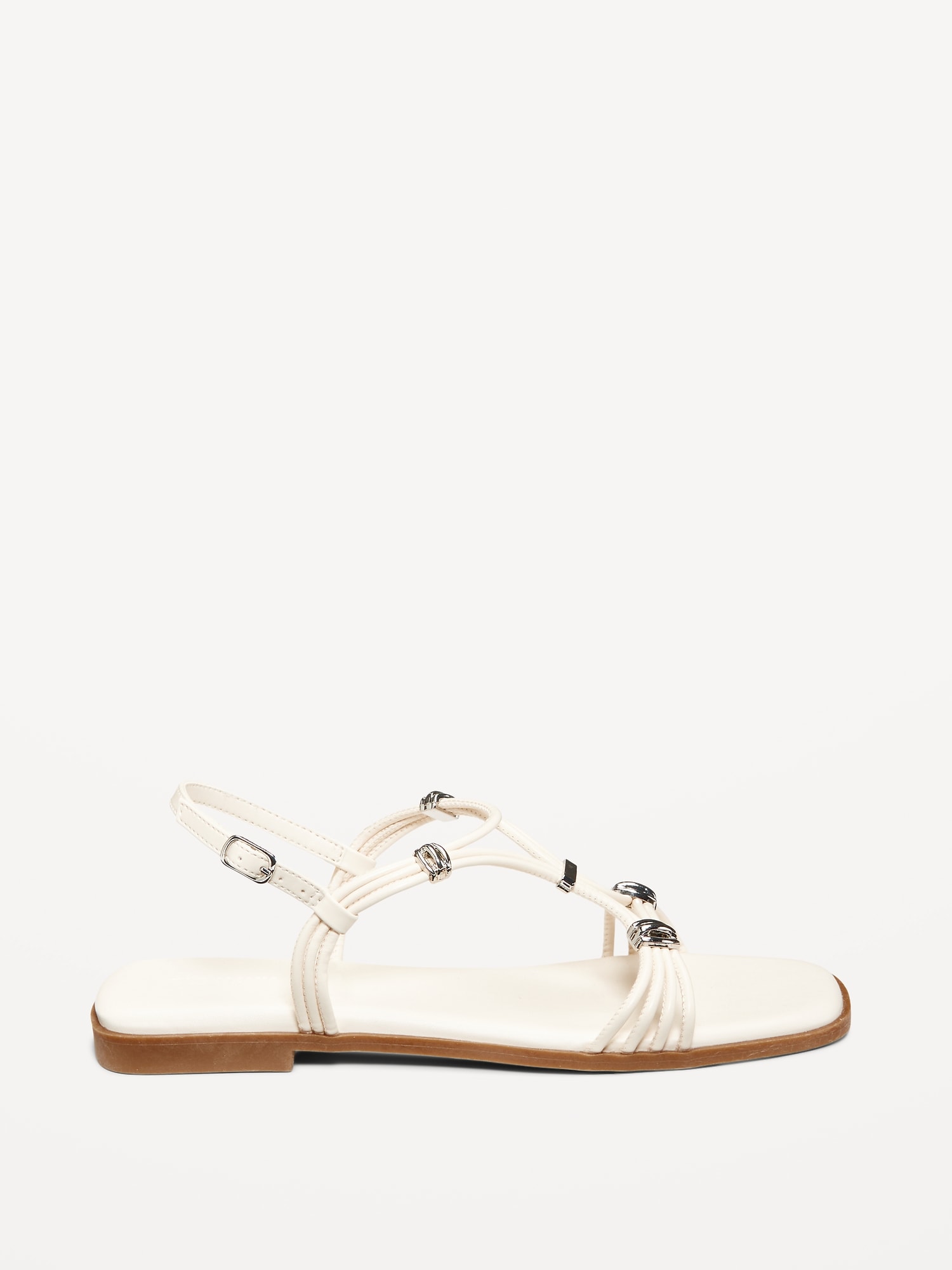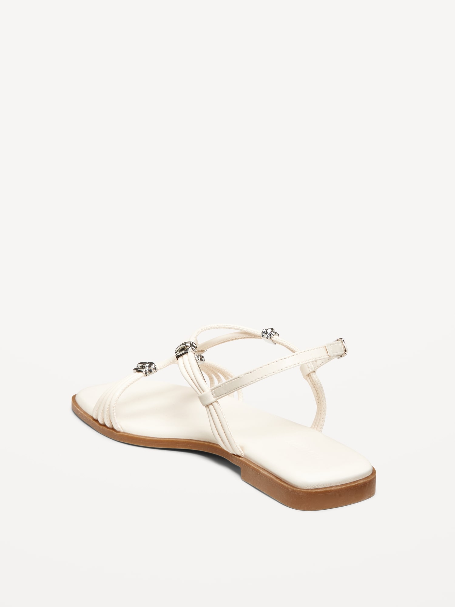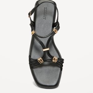 Faux-Leather Strappy Hardware Sandals: faux-leather upper, black: knotted gold-tone detail, bone: knotted silver-tone detail, buckle fastening at ankle, cushioned foot bed, #751054