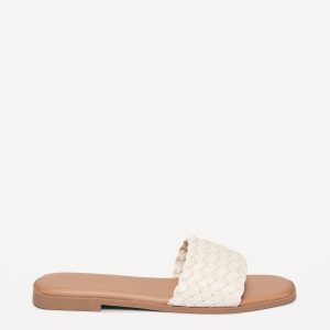 Faux-Leather Woven Slide Sandals