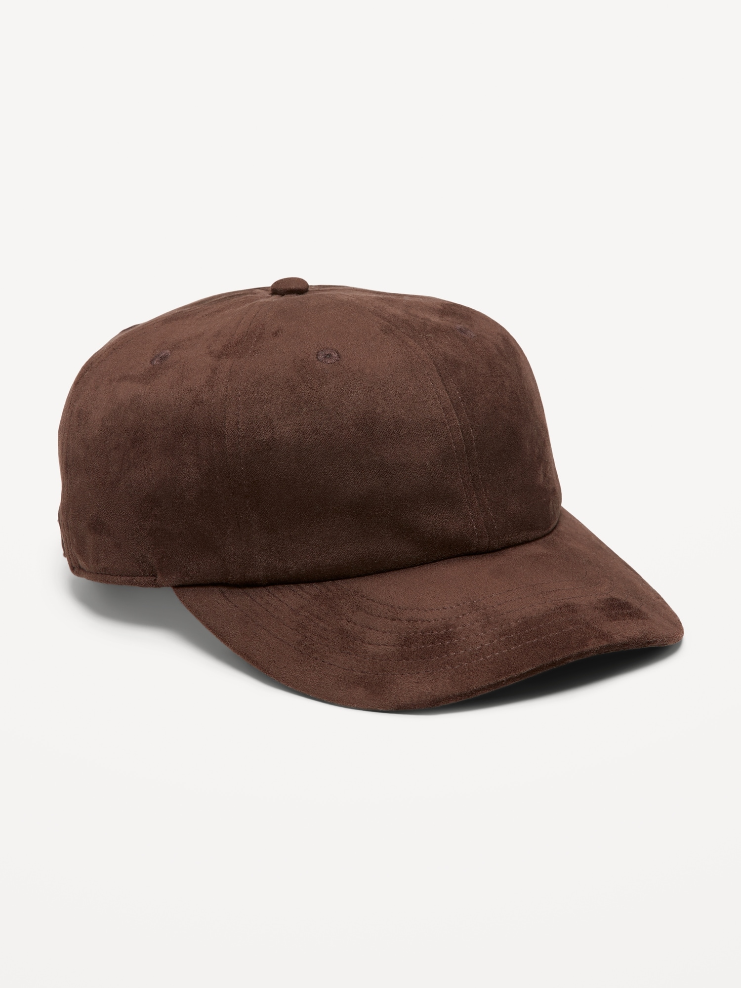 Faux-Suede Baseball Cap for Men: button at crown, embroidered eyelets, curved visor, #801624