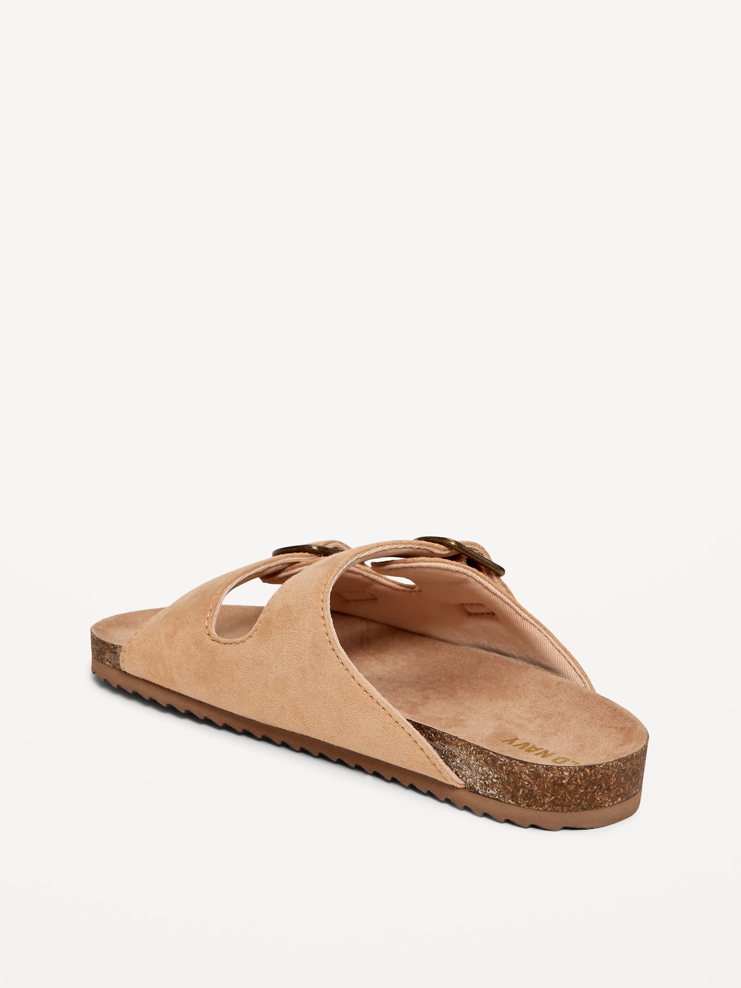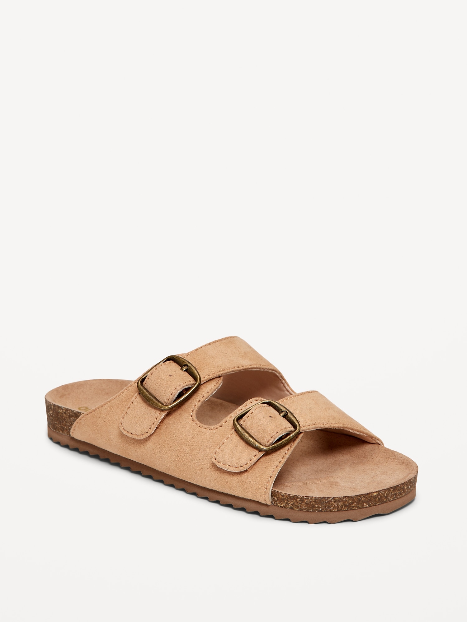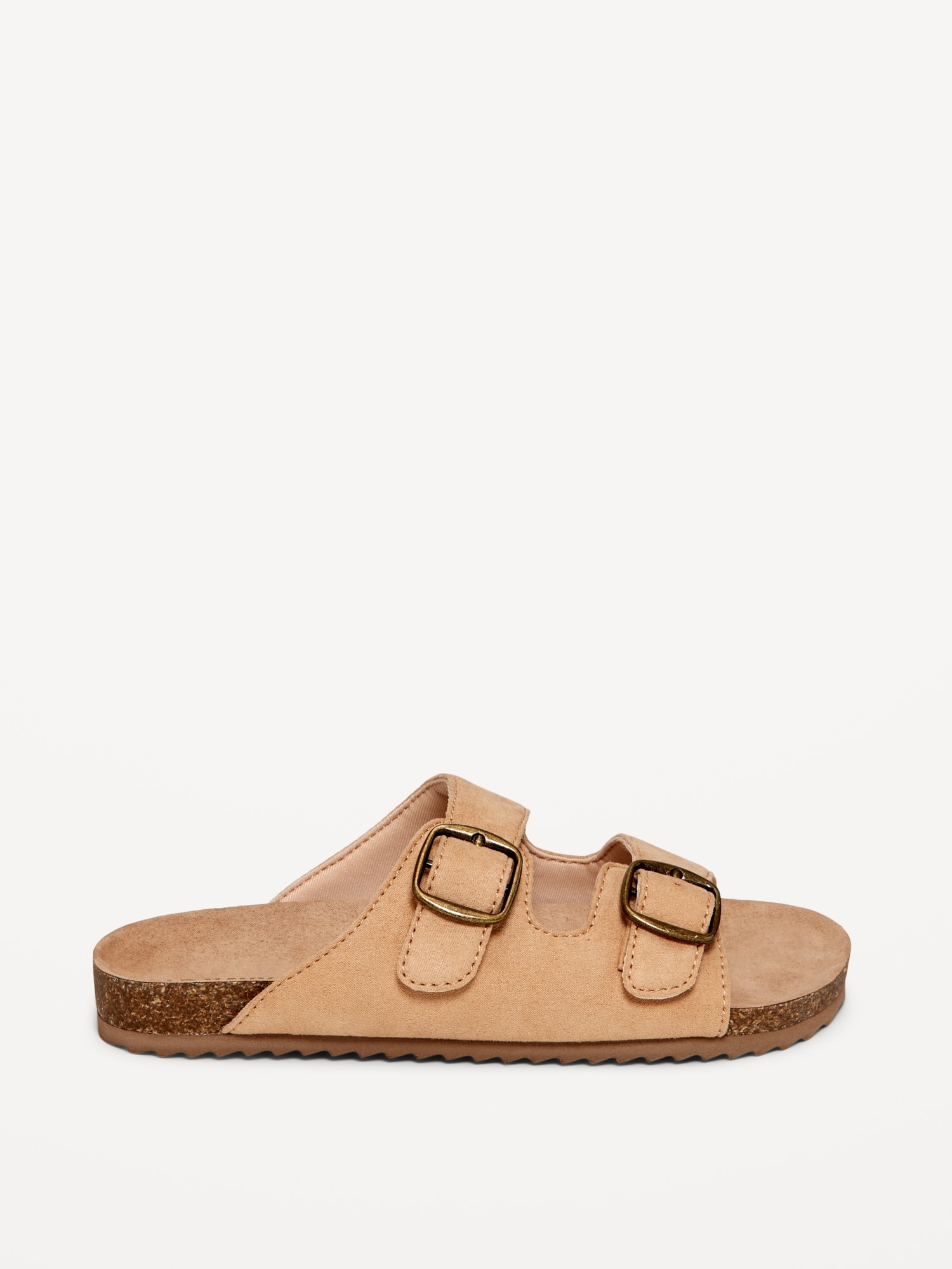 Faux-Suede Buckled Strap Sandals for Girls: double buckle straps, cushioned foot bed, faux-cork midsole, textured woven crochet-like pattern along straps, #693401