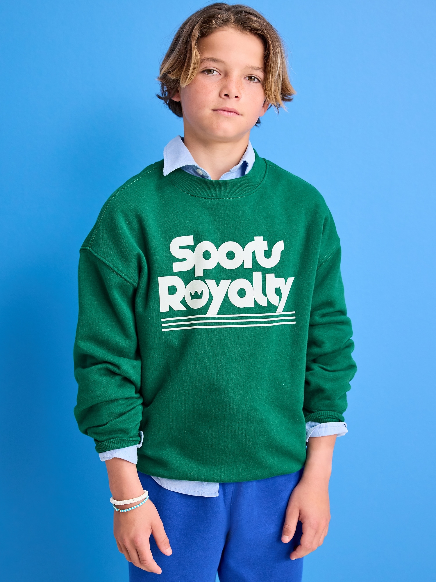 Favorite Fleece Oversized Graphic Fleece Sweatshirt for Boys: crew neck, long sleeves, drop shoulders, graphic at front, banded hem, #761766
