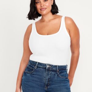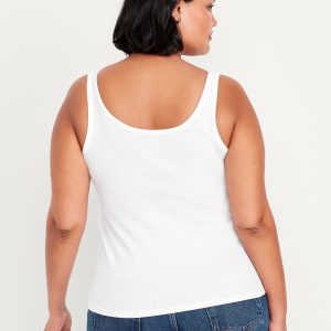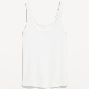 First-Layer Ribbed Scoop-Neck Tank Top: scoop neck, wide straps, #619927
