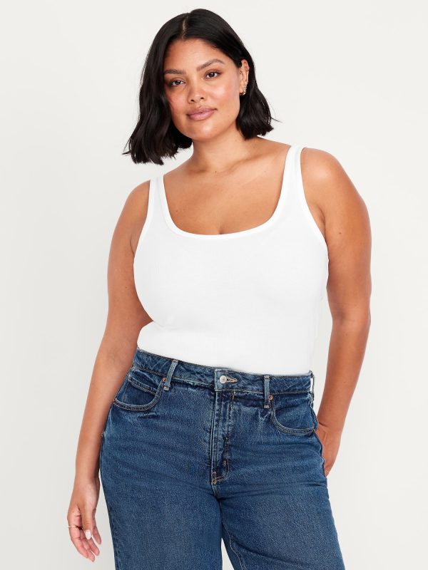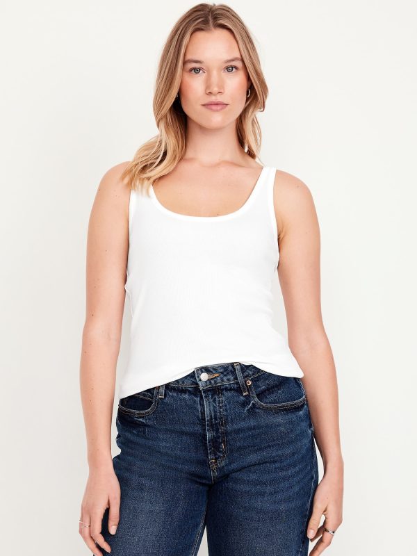 First-Layer Ribbed Scoop-Neck Tank Top: scoop neck, wide straps, #619927