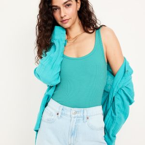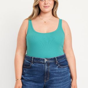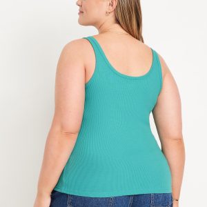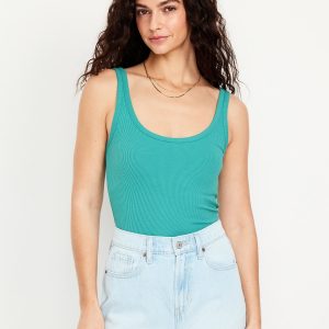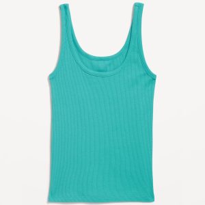 First-Layer Ribbed Scoop-Neck Tank Top