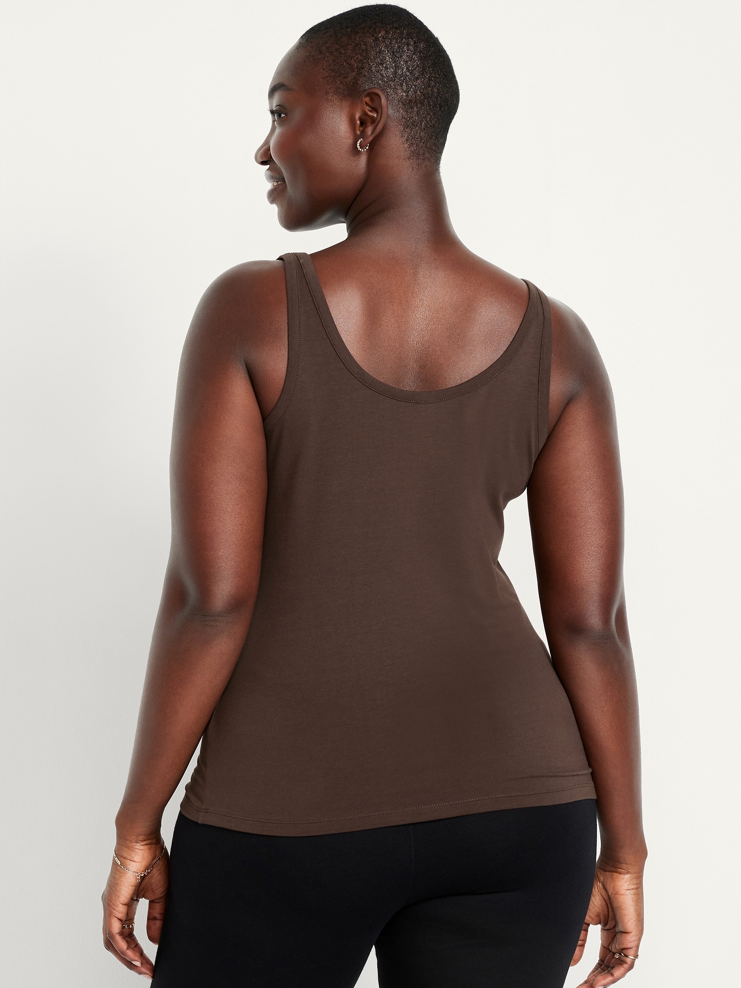 First-Layer Scoop-Neck Tank Top: scoop neck, wide straps, #619919