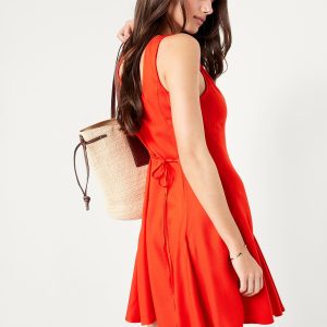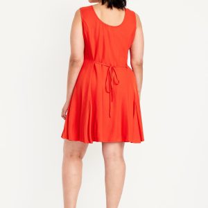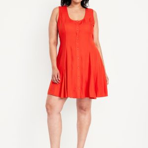 Fit & Flare Crepe Button-Front Mini Dress: scoop neck, wide straps, tie-back waist, full button front, princess seams, #798239
