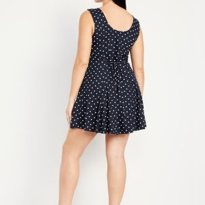 Fit & Flare Crepe Button-Front Mini Dress: scoop neck, wide straps, tie-back waist, full button front, princess seams, #798239