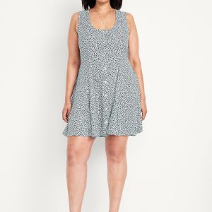 Fit & Flare Crepe Button-Front Mini Dress: scoop neck, wide straps, tie-back waist, full button front, princess seams, #798239