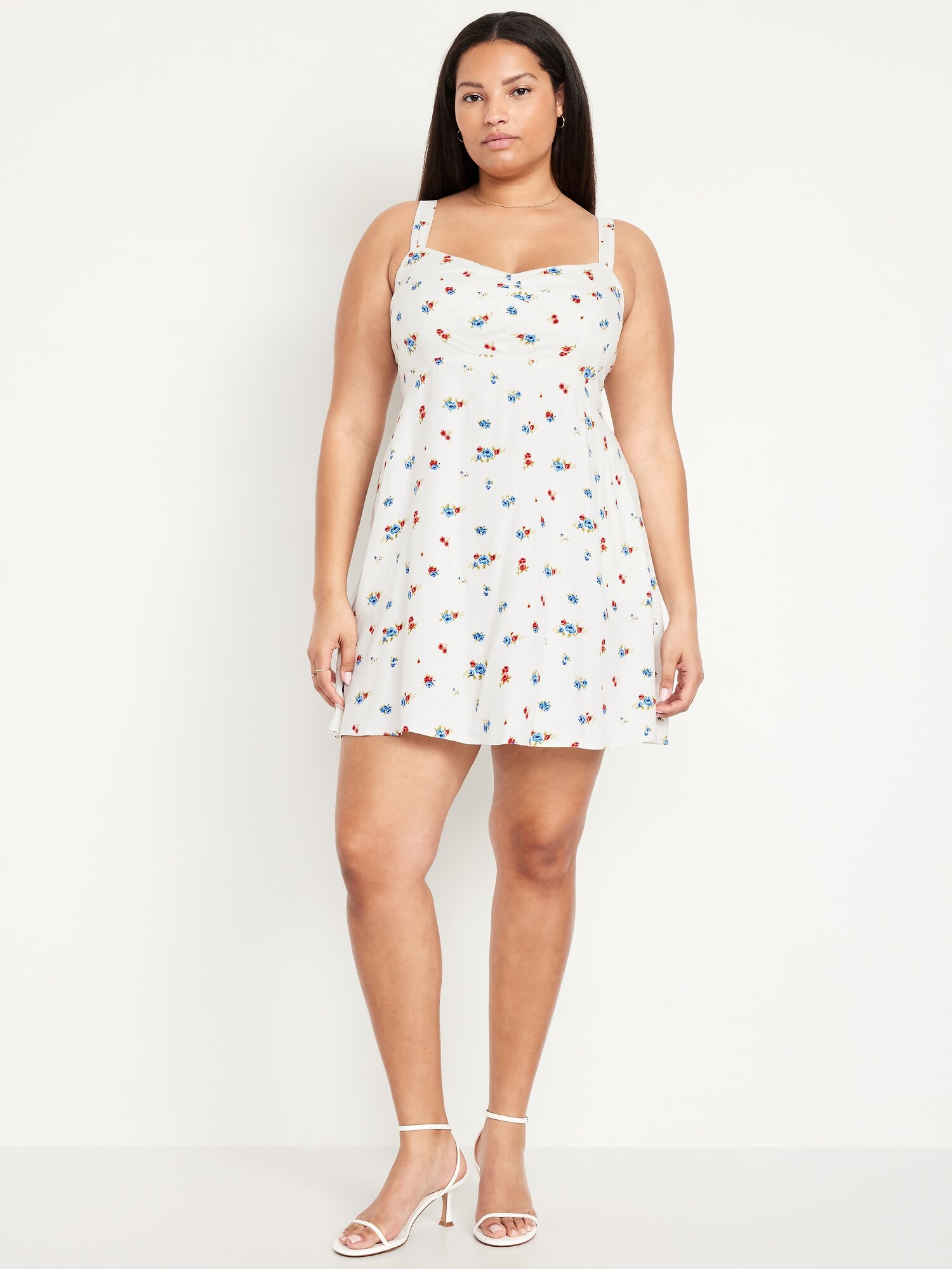 Fit & Flare Crepe Floral Mini Dress: Our strappy fit and flare that’s an instant classic.sweetheart neckline, wide adjustable straps, on-seam pockets, smocked back, seamed waist, #798221