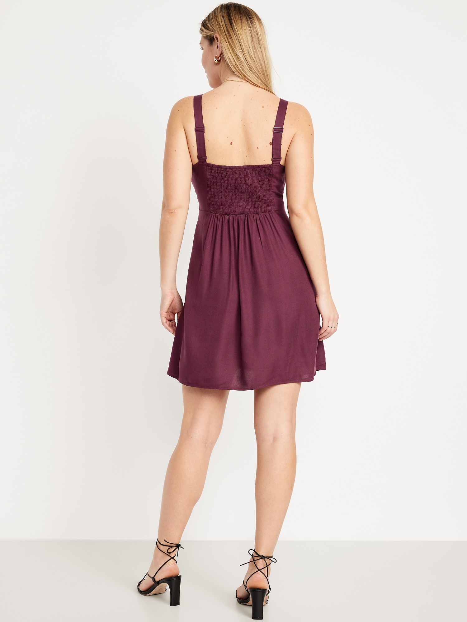 Fit & Flare Crepe Mini Dress: Our strappy fit and flare that’s an instant classic.sweetheart neckline, wide adjustable straps, on-seam pockets, smocked back, seamed waist, #798221