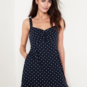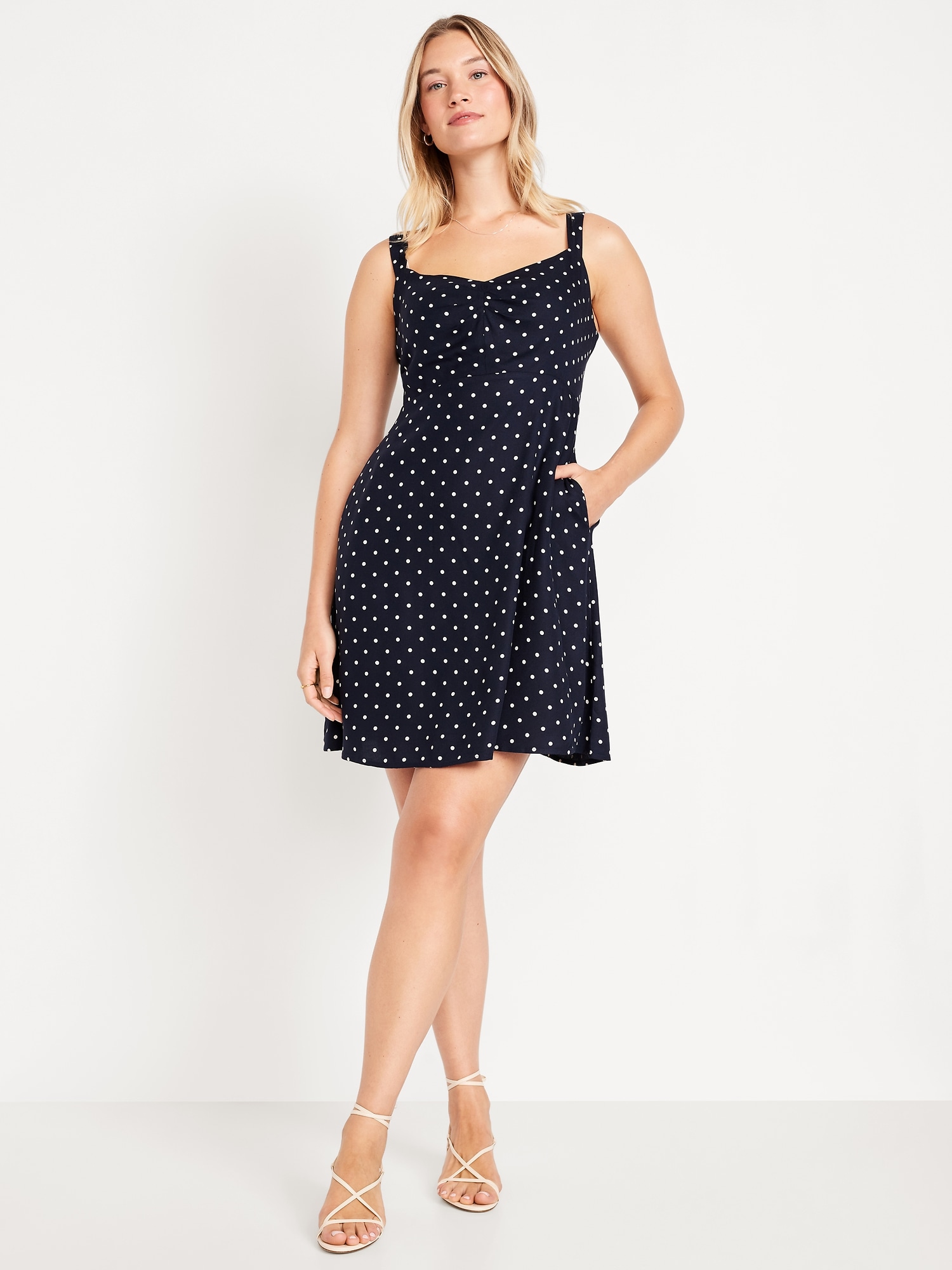 Fit & Flare Crepe Mini Dress: Our strappy fit and flare that’s an instant classic.sweetheart neckline, wide adjustable straps, on-seam pockets, smocked back, seamed waist, #798221
