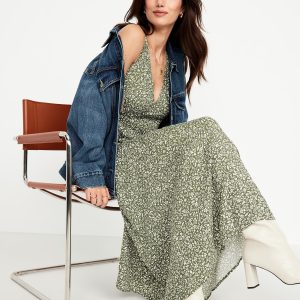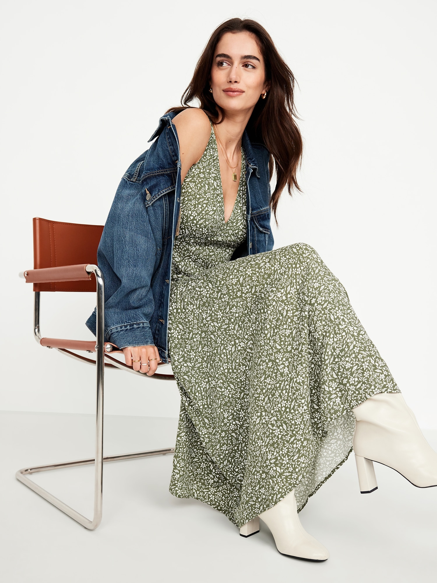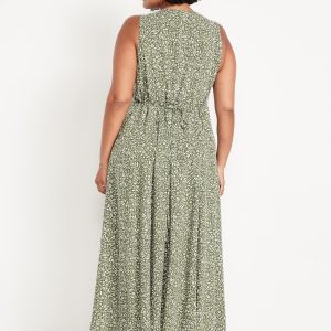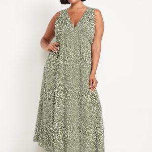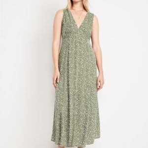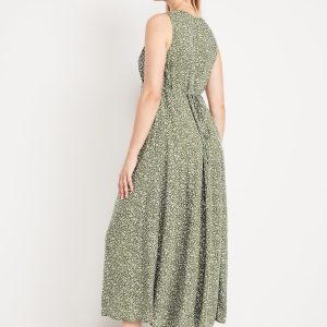 Fit & Flare Floral Maxi Dress: deep v-neck, sleeveless, tie-back waist, all-over floral print, #808837