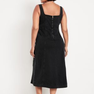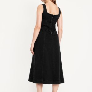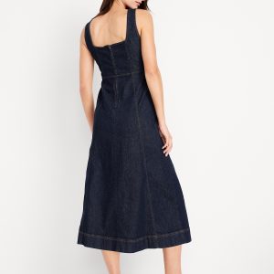 Fit & Flare Sleeveless Denim Midi Dress