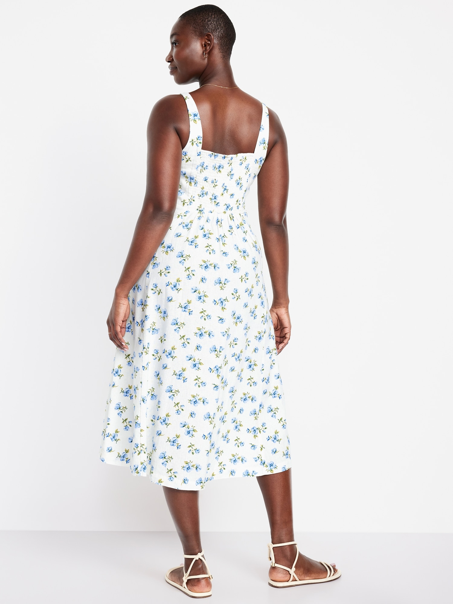 Fit & Flare Sleeveless Linen-Blend Midi Dress