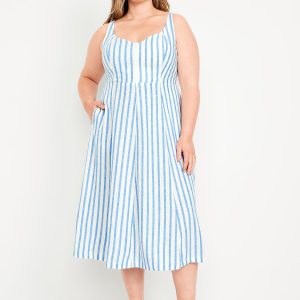 Fit & Flare Sleeveless Linen-Blend Midi Dress