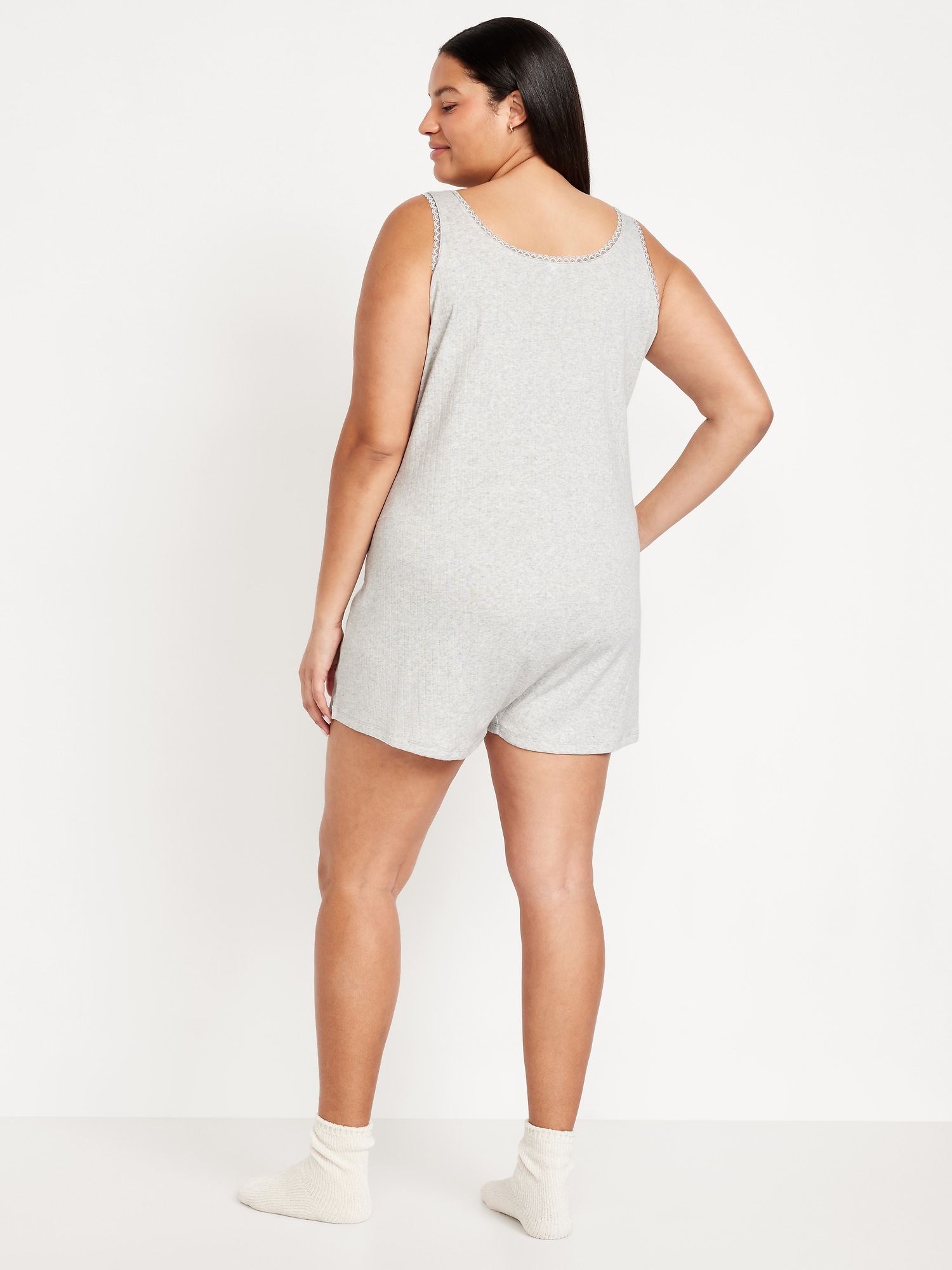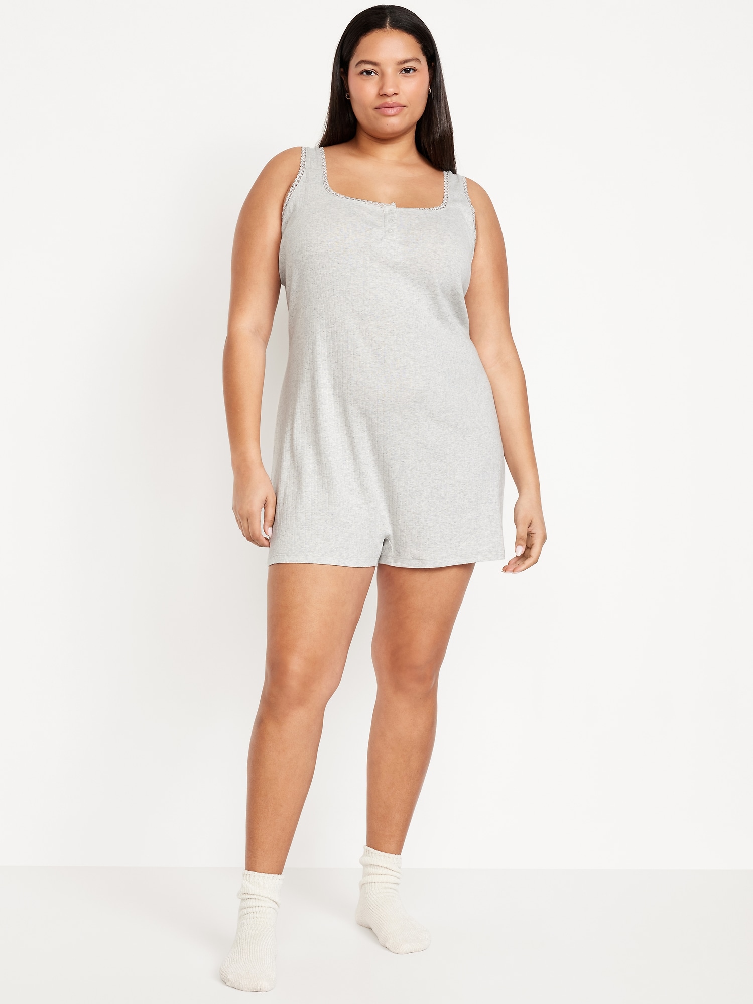 Fitted Pointelle Lace Pajama Romper