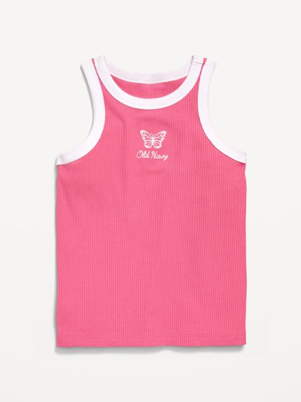 Fitted Ribbed Logo-Graphic Tank Top for Girls: high rounded neckline, sleeveless, logo graphic at front, available exclusively online and at old navy outlet stores., #663692