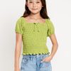 Fitted Ruched Seamless Performance Top for Girls: square neckline, short sleeves, ruching at sides, #763220