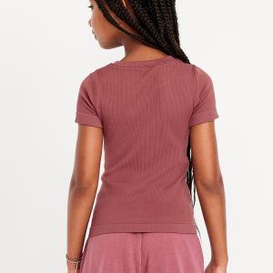 Fitted Seamless Ribbed Performance Top for Girls: crew neck, short sleeves, #802735