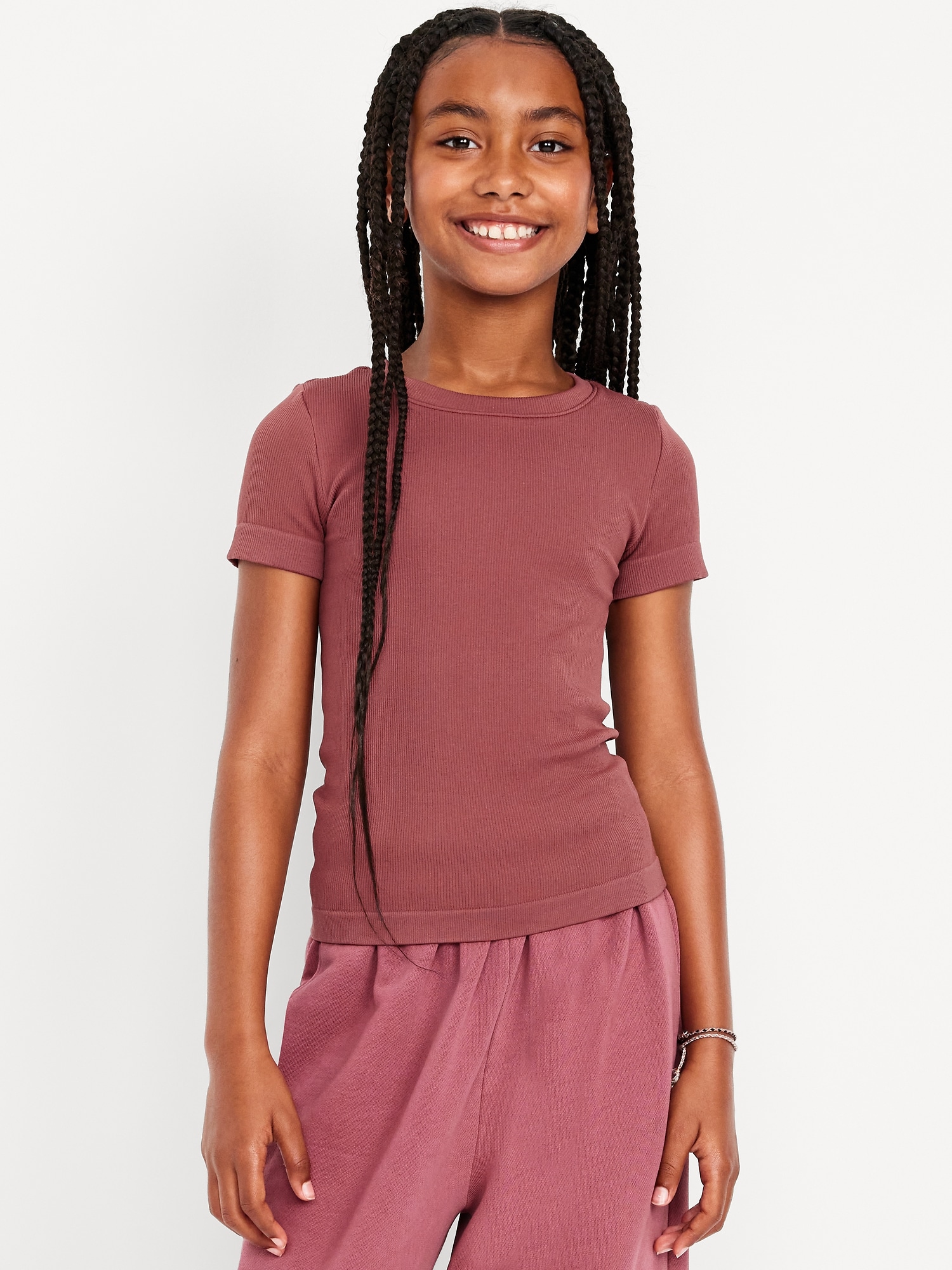 Fitted Seamless Ribbed Performance Top for Girls: crew neck, short sleeves, #802735