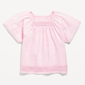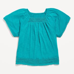 Fitted Short-Sleeve Lettuce-Edge Top for Girls