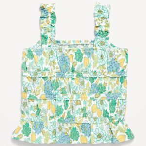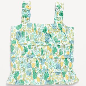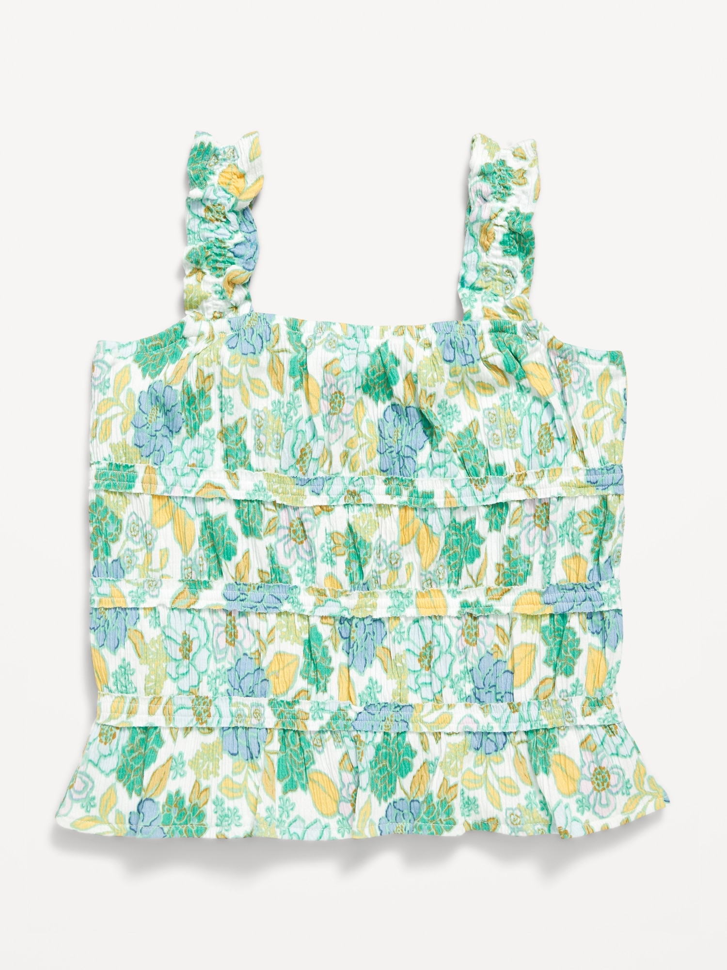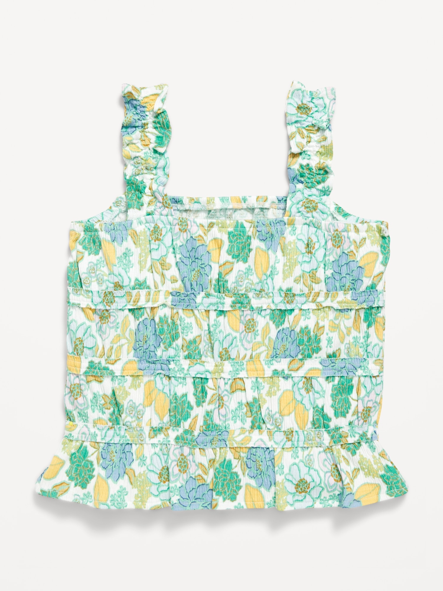 Fitted Smocked Tank Top for Girls: square neckline, wide shoulder straps, smocked bodice, ruffled hem, #766945