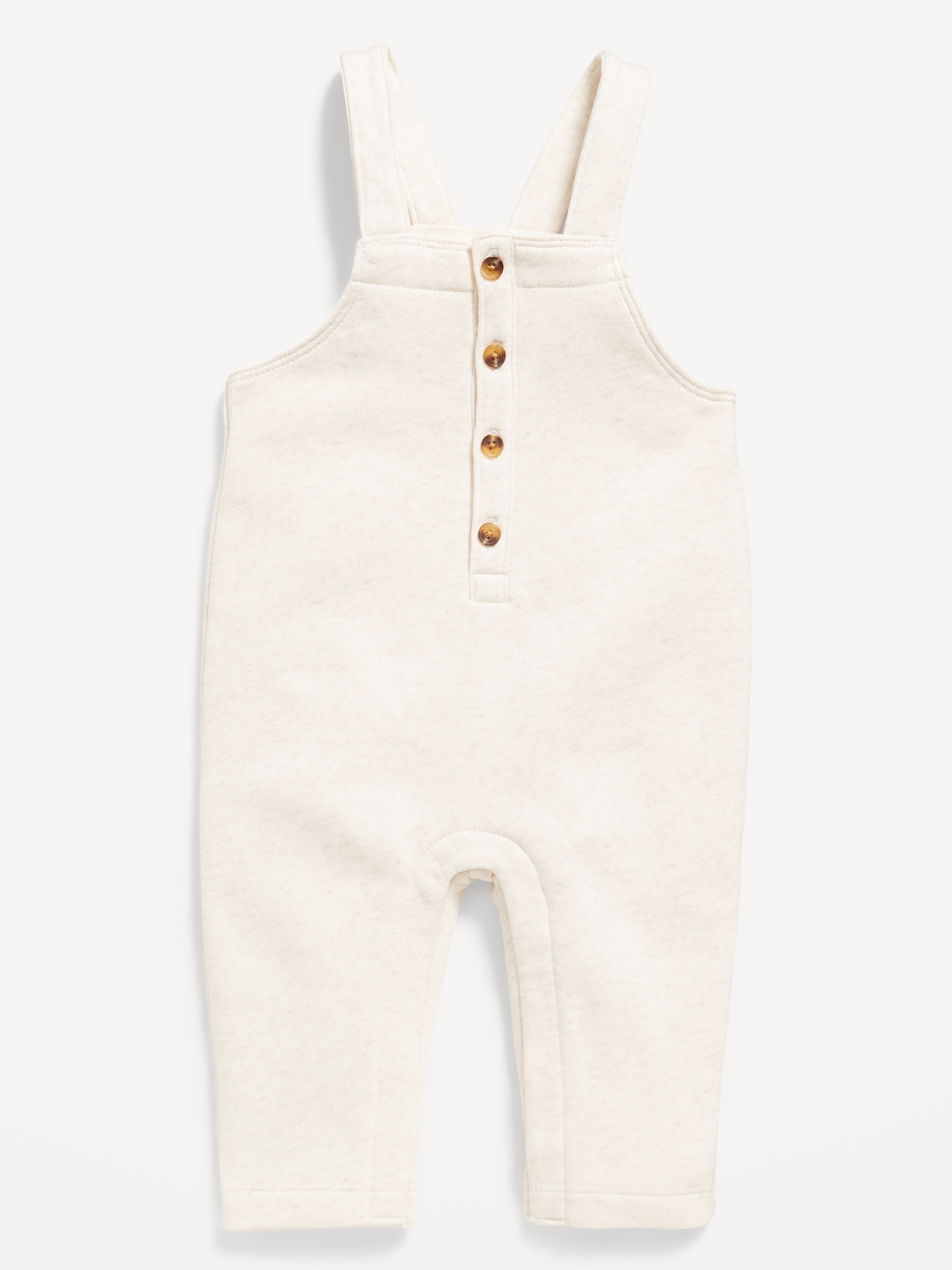 Fleece Button-Front Overalls for Baby: square neckline, shoulder straps, buttoned placket at front, hidden snaps along inseam, #802637
