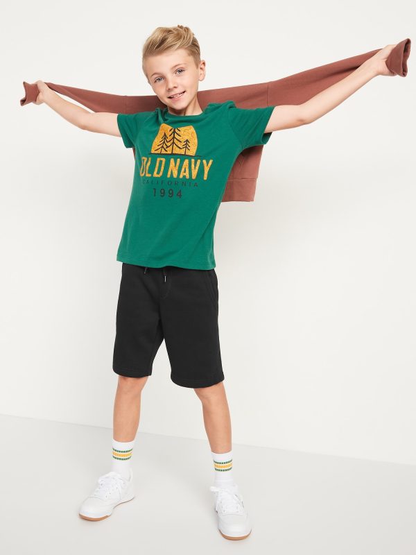 Fleece Jogger Shorts for Boys (At Knee): elasticized waistband, interior drawstring, on-seam welt pockets, #685948