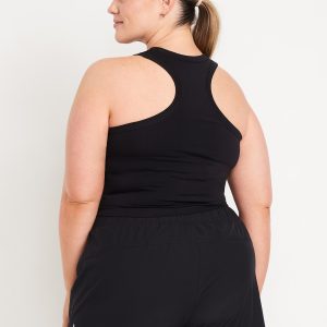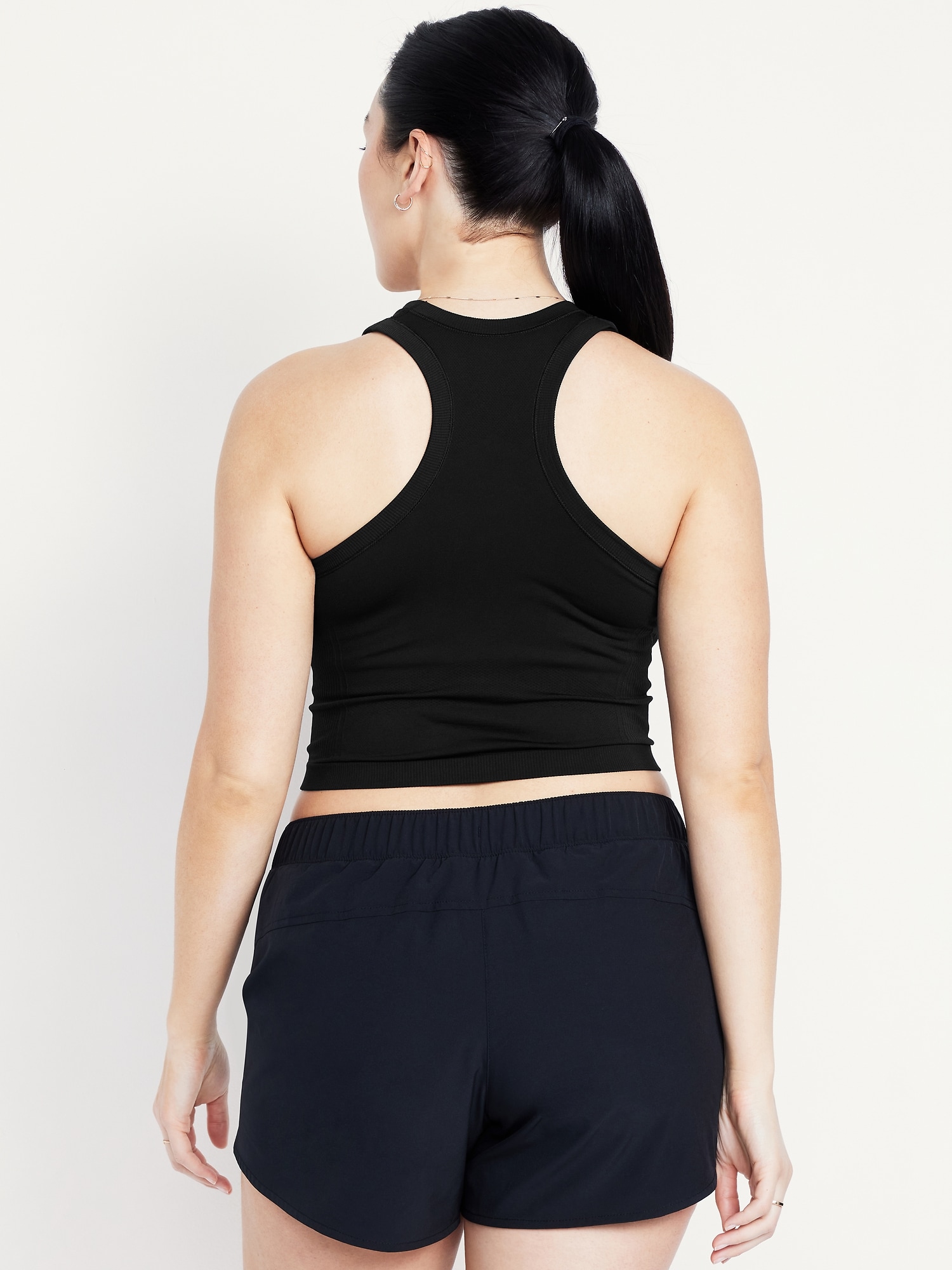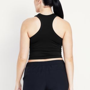Fluid Seamless Fitted Crop Tank Top: Featuring Fluid Seamless, for breathable, barely-there feels.rib-knit panels at sides and back, crew neck, racerback, go-dry wicks moisture, #848722