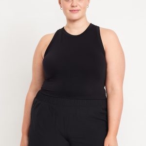Fluid Seamless Fitted Crop Tank Top: Featuring Fluid Seamless, for breathable, barely-there feels.rib-knit panels at sides and back, crew neck, racerback, go-dry wicks moisture, #848722