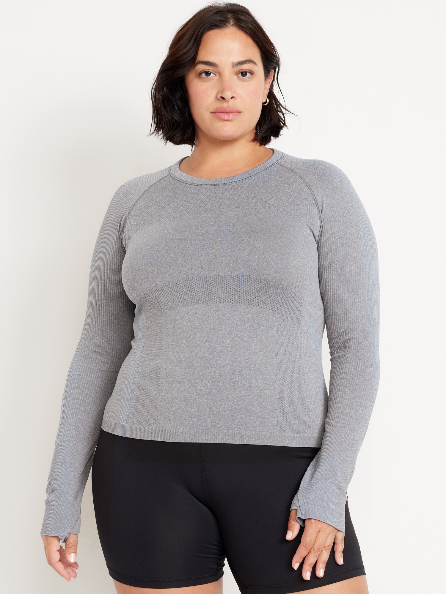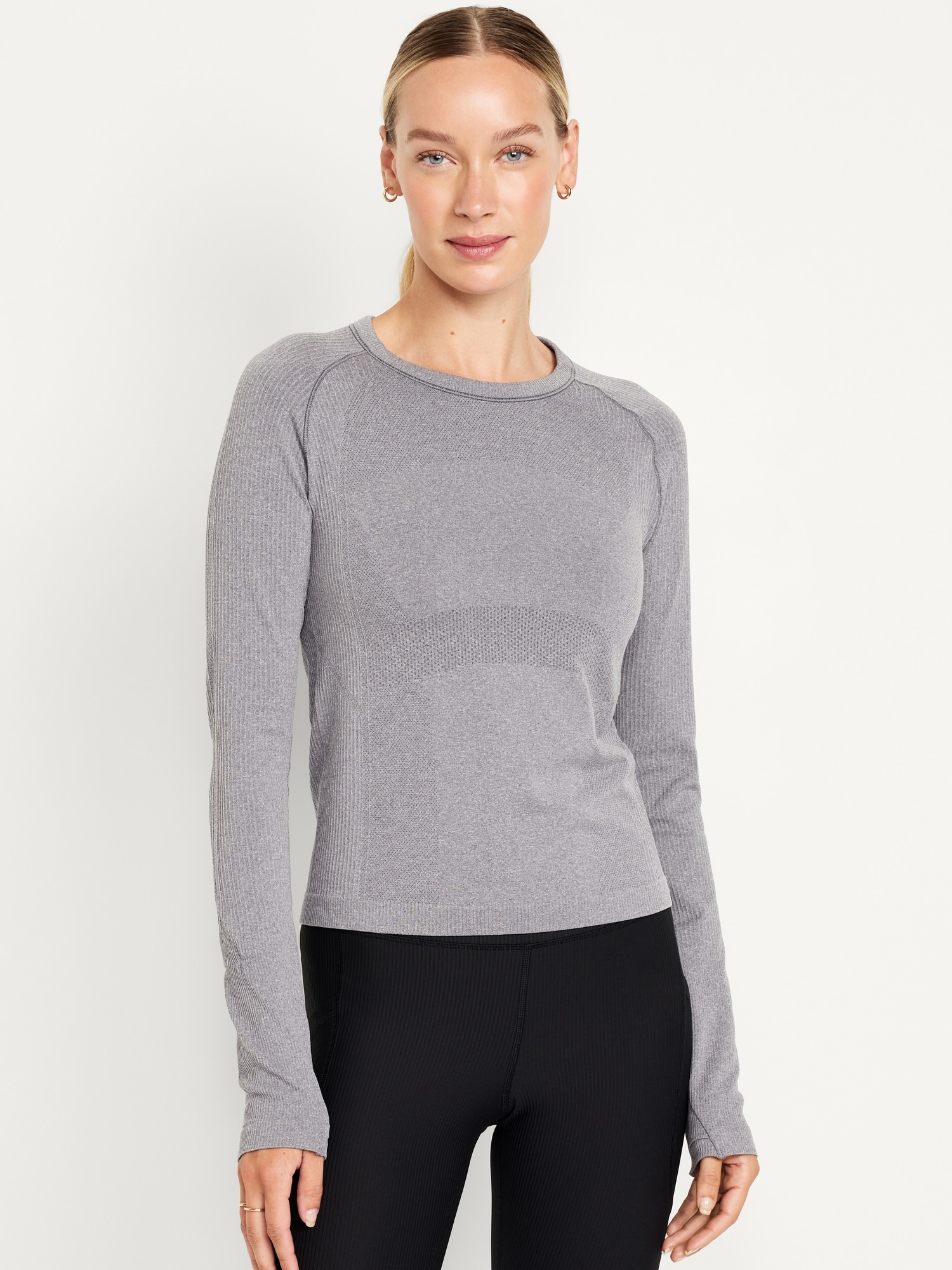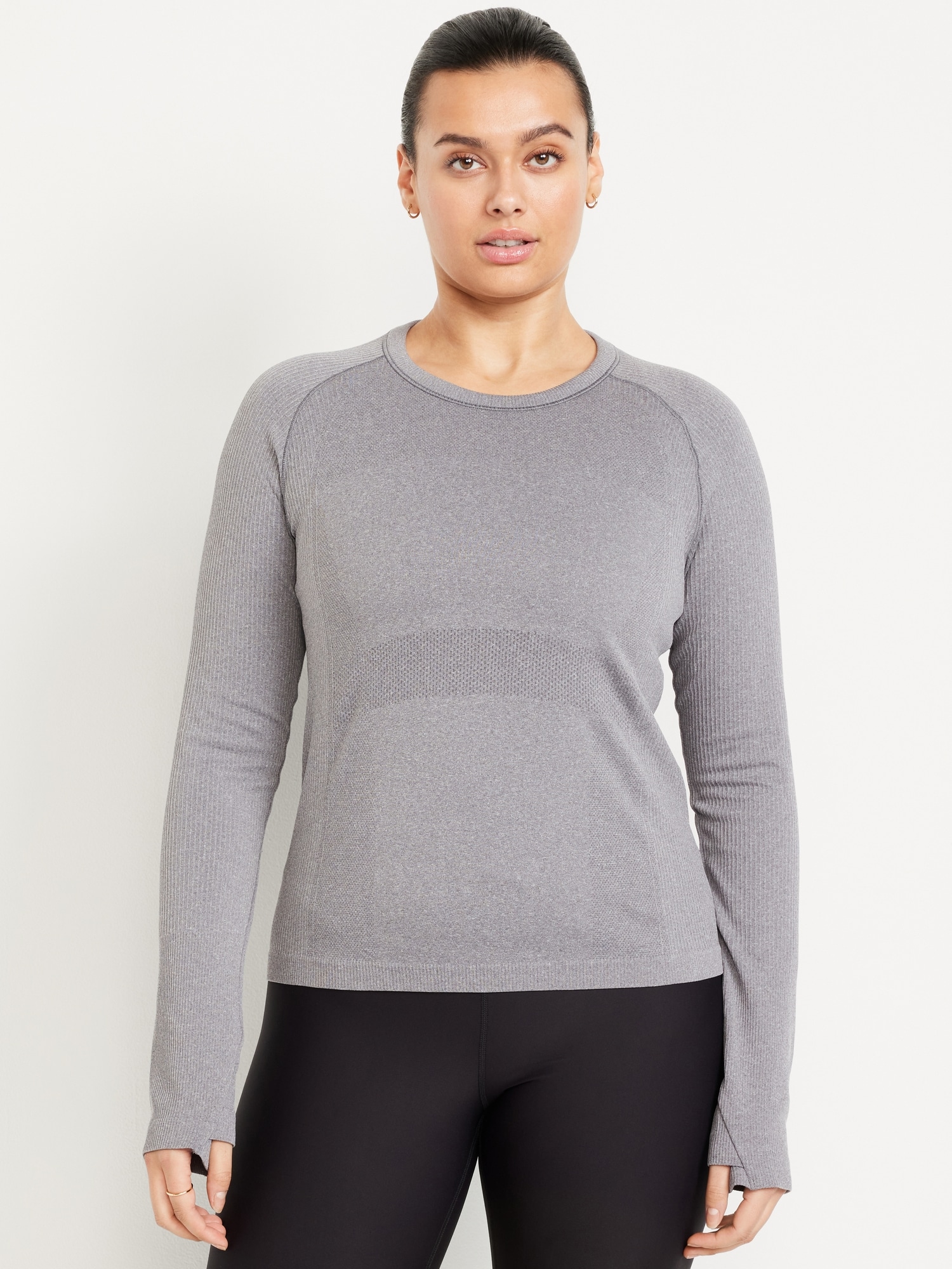 Fluid Seamless Fitted Top: Featuring Fluid, for breathable, barely-there feels.crew neck, raglan sleeves, thumbhole cuffs, go-dry wicks moisture, #809350