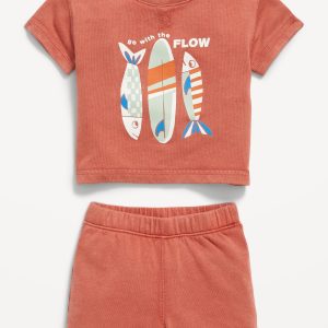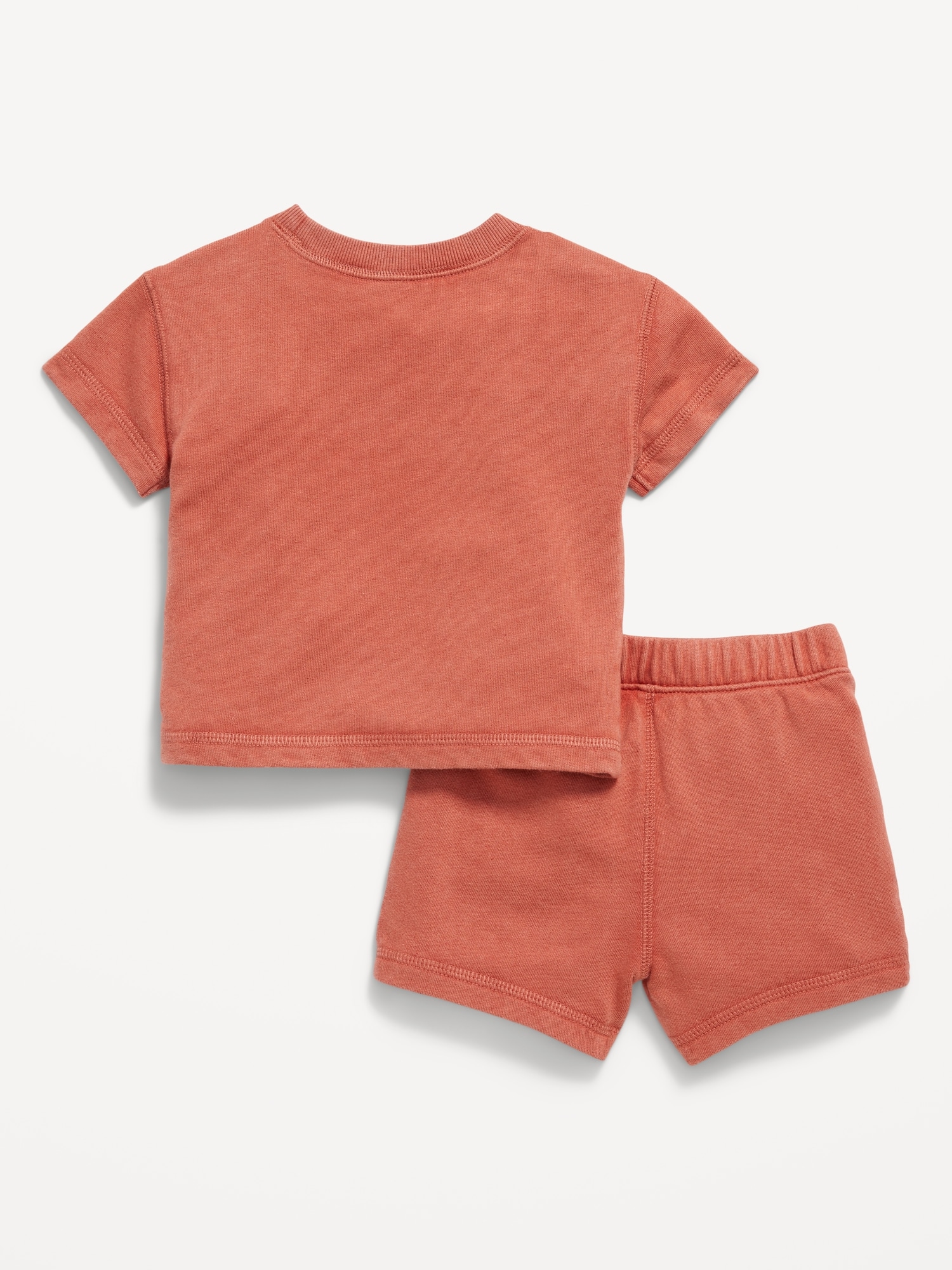 French-Terry Graphic Top and Shorts Set for Baby: crew neck, short sleeves, graphic at front, matching shorts, elasticized waistband, #761914