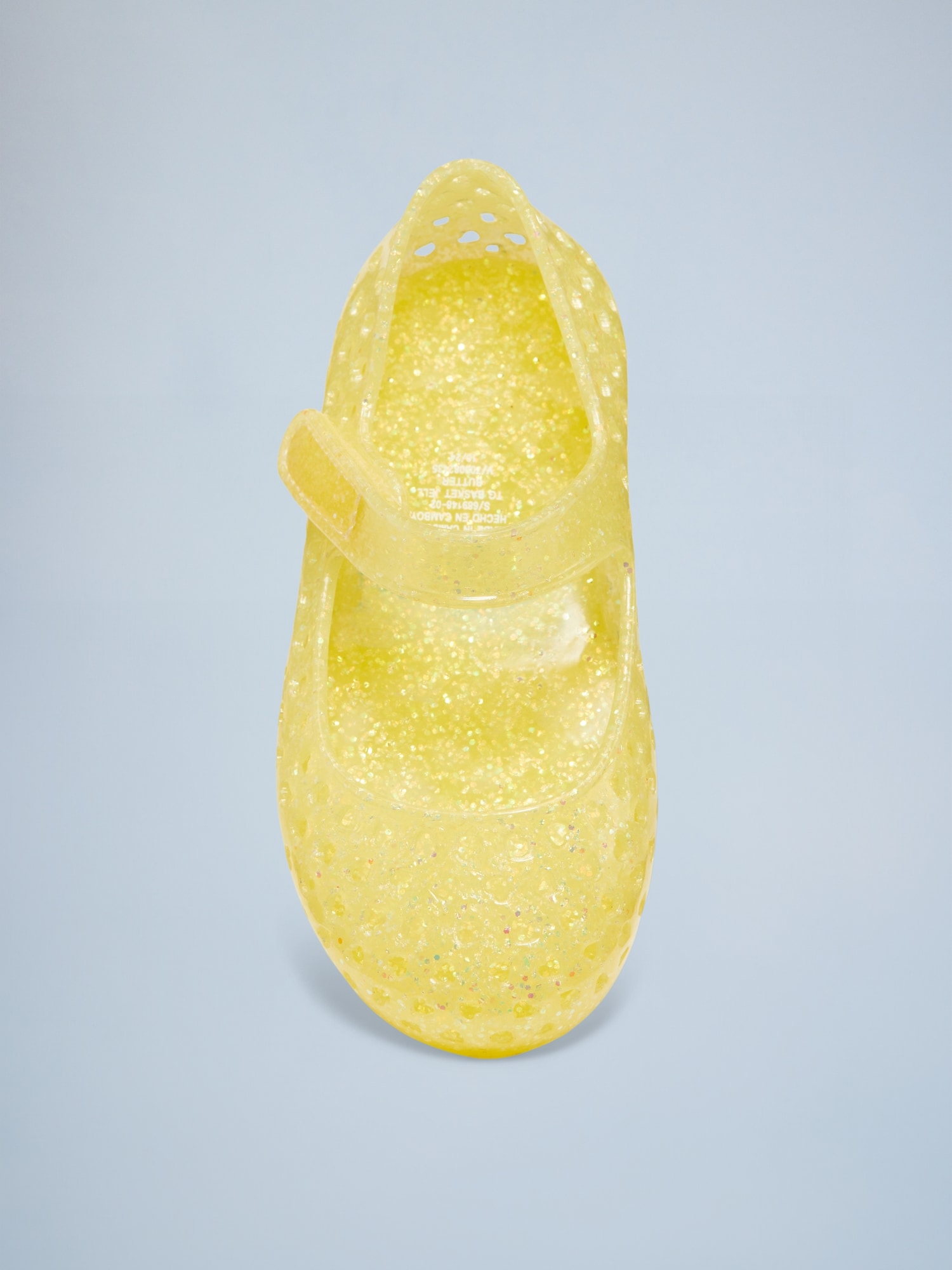 Fruity Scented Jelly Mary-Jane Flats for Toddler Girls: secure-close mary-jane strap across foot, cut-out pattern, firm foot bed, textured outsole, all-over glitter, ©Disney., #762294