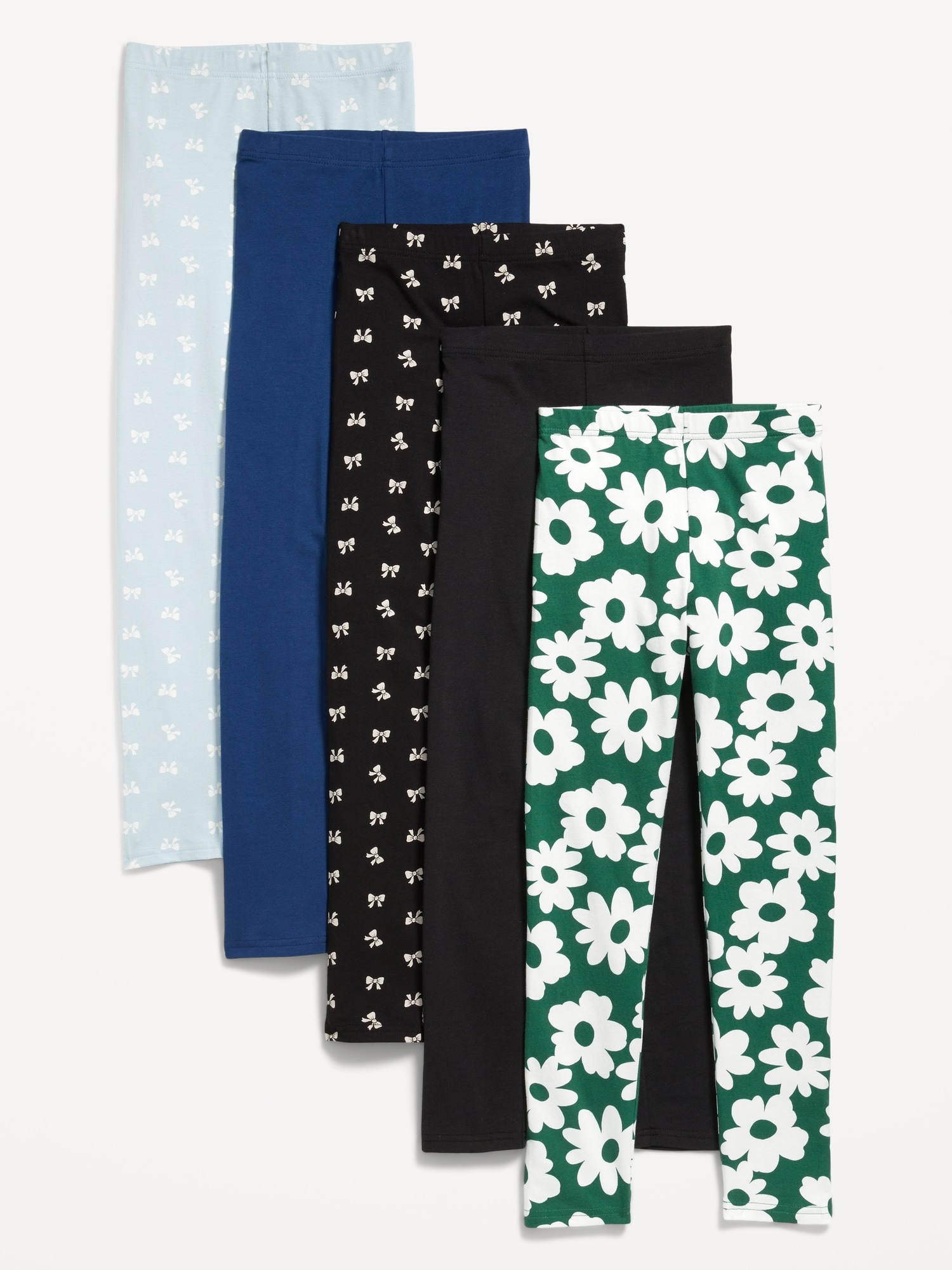 Full-Length Leggings 5-Pack for Girls: pack includes 5 pairs of leggings, elasticized waistband, solid and all-over print, online exclusive, #805627