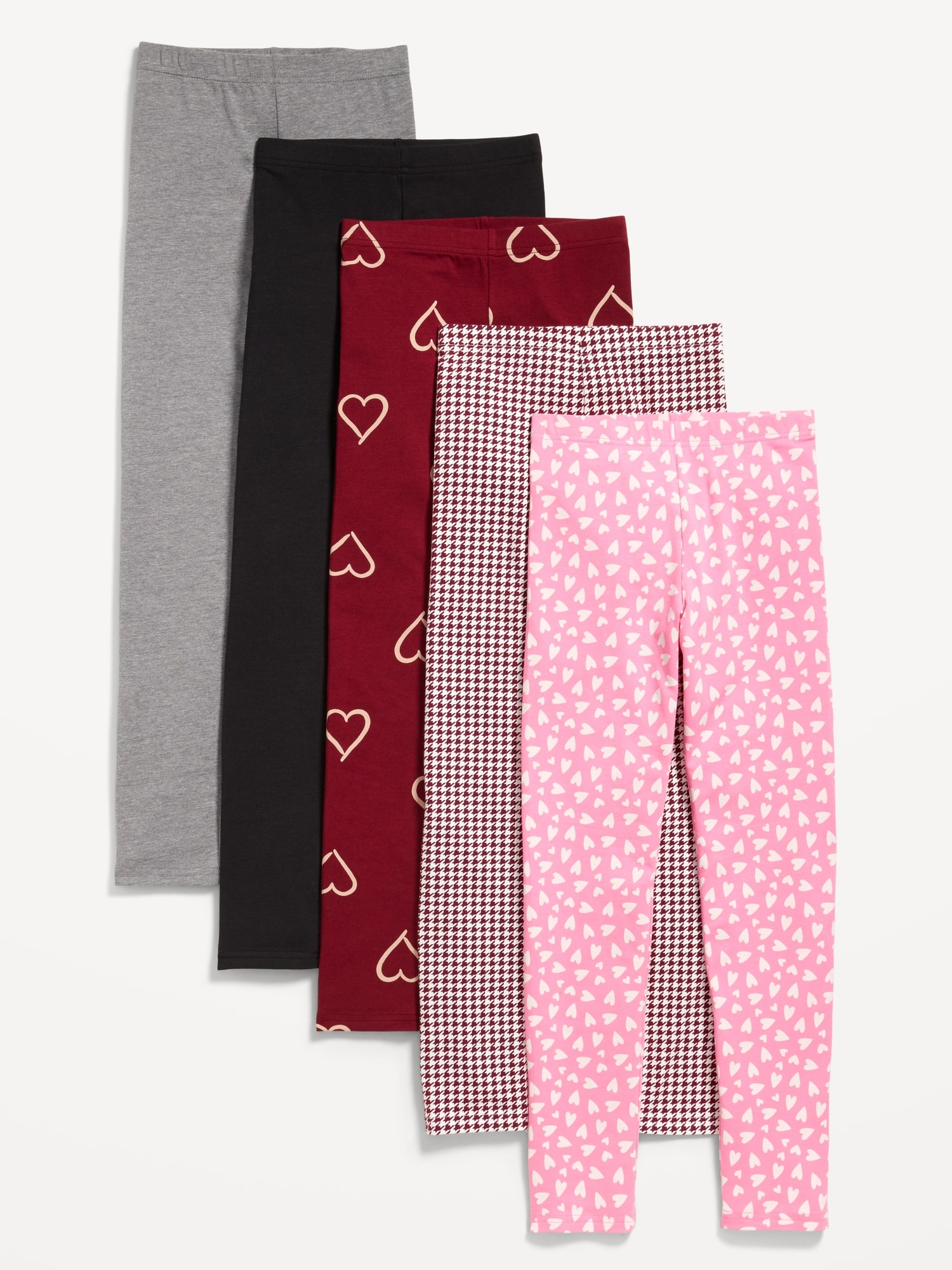 Full-Length Leggings 5-Pack for Girls: pack includes 5 pairs of leggings, elasticized waistband, solid and all-over print, online exclusive, #805627
