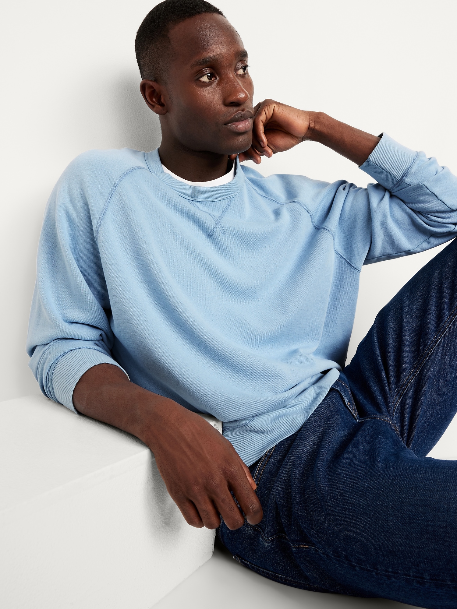 Garment-Dyed Crew-Neck Sweatshirt: crew neck, long raglan sleeves, front graphic varies, rib-knit trim, pullover style, #761169