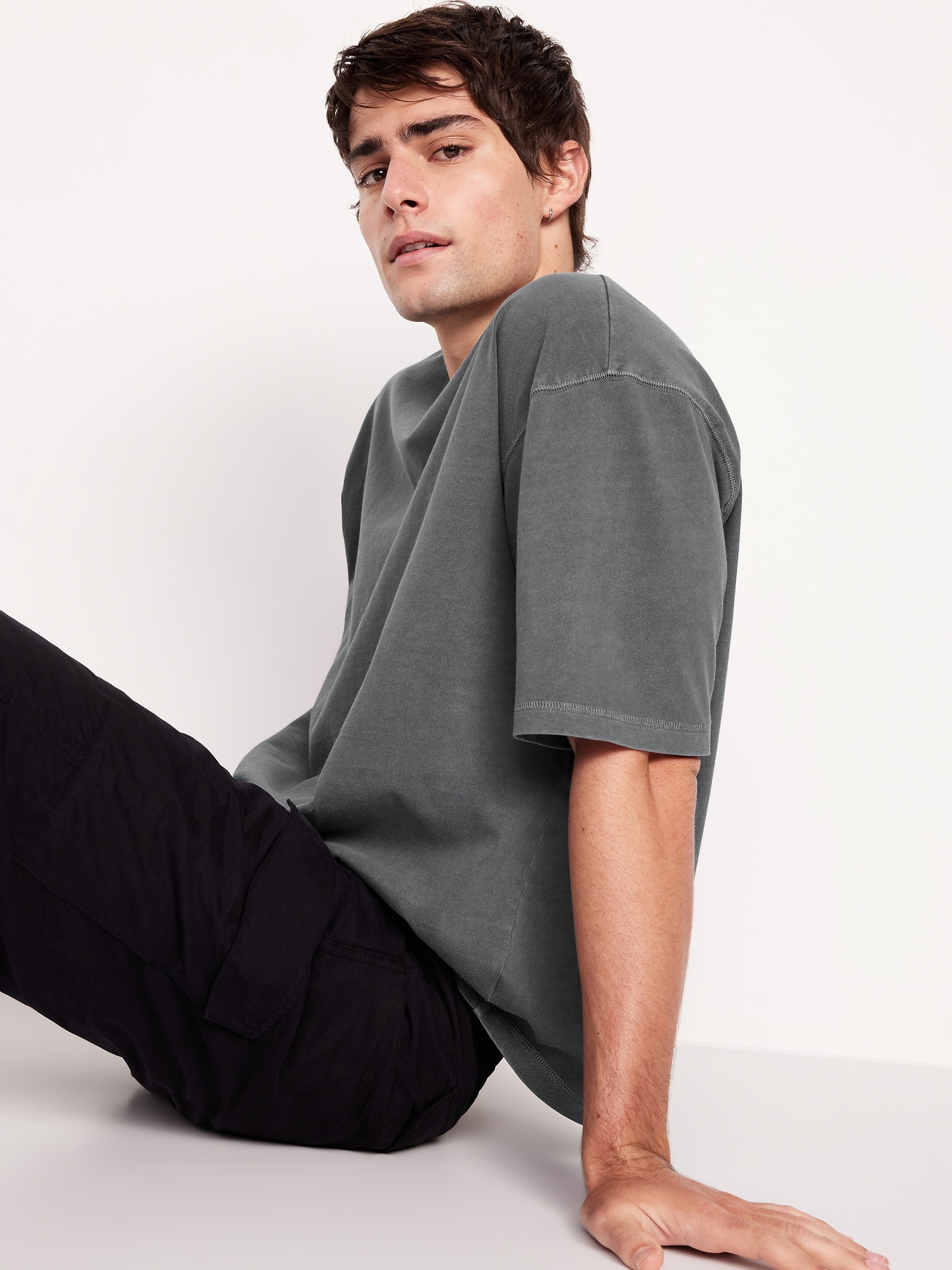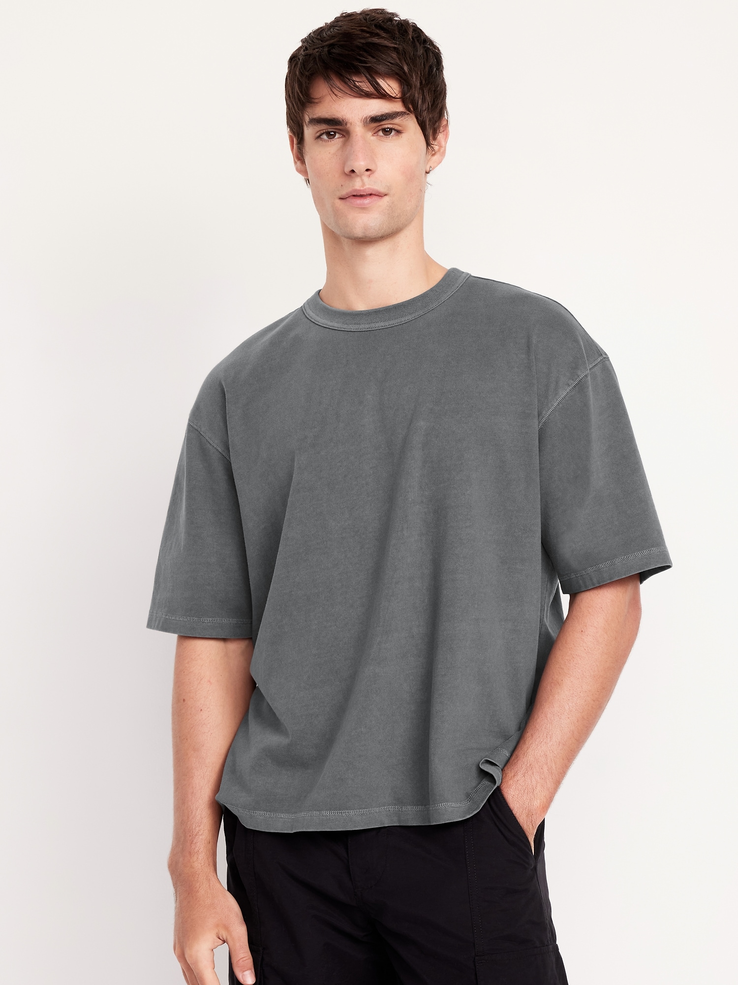Garment-Dyed Cropped T-Shirt: rib-knit crew neck, short sleeves, #719209
